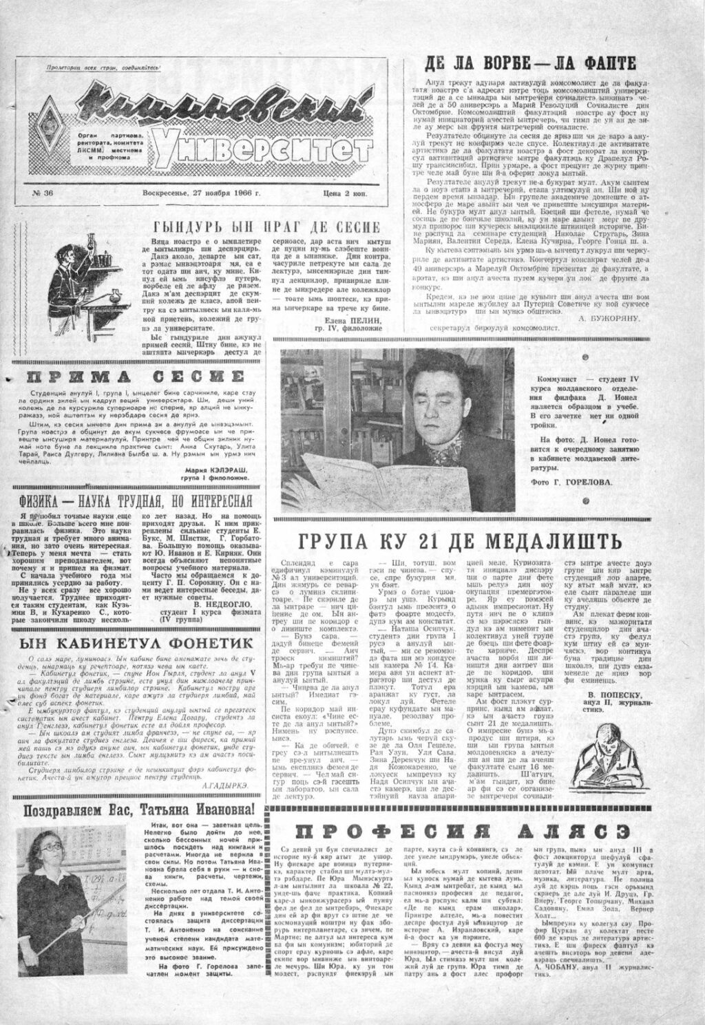 Ziarul USM – Nr. 36 – 27 noiembrie 1966