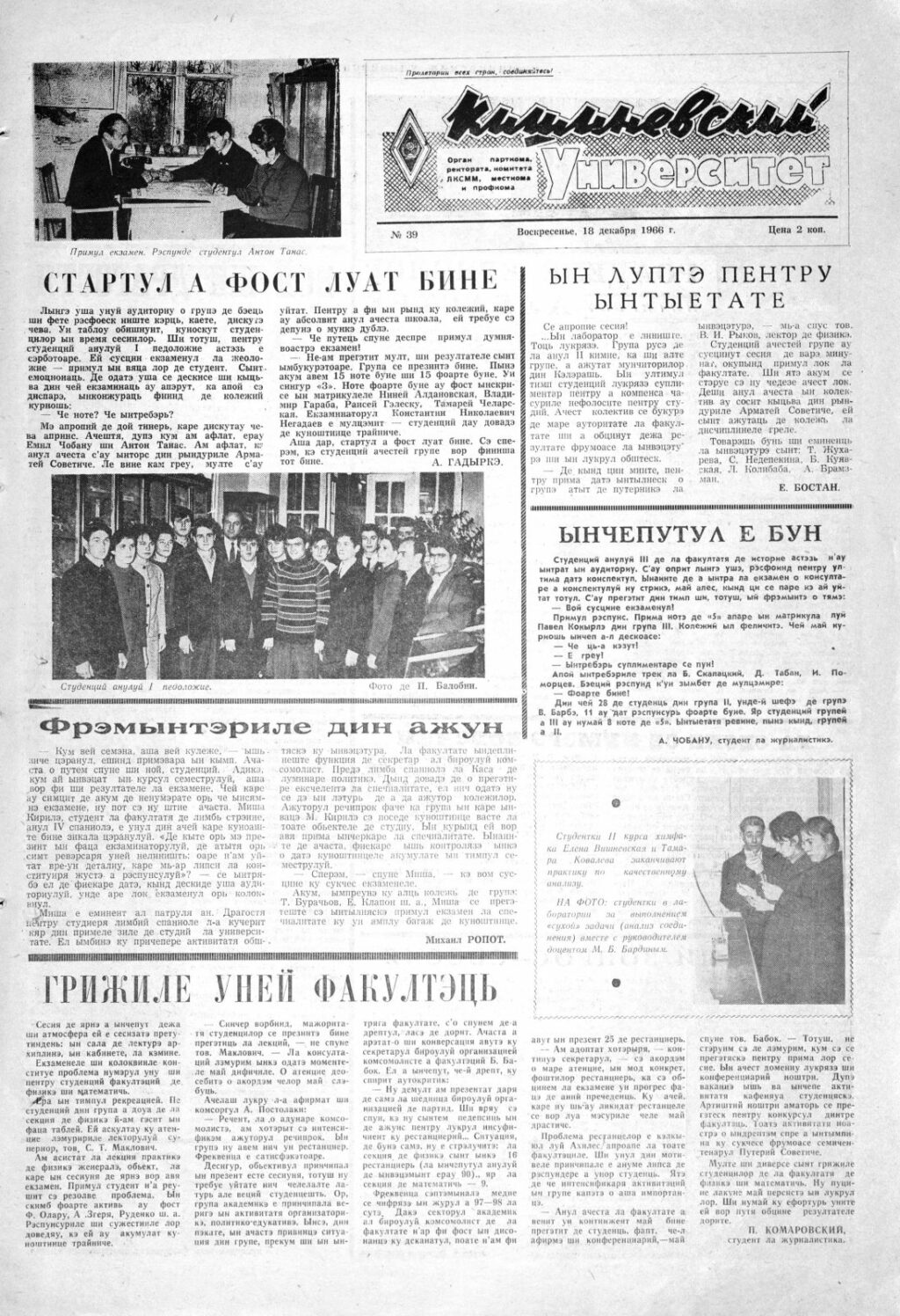 Ziarul USM – Nr. 39 – 18 decembrie 1966
