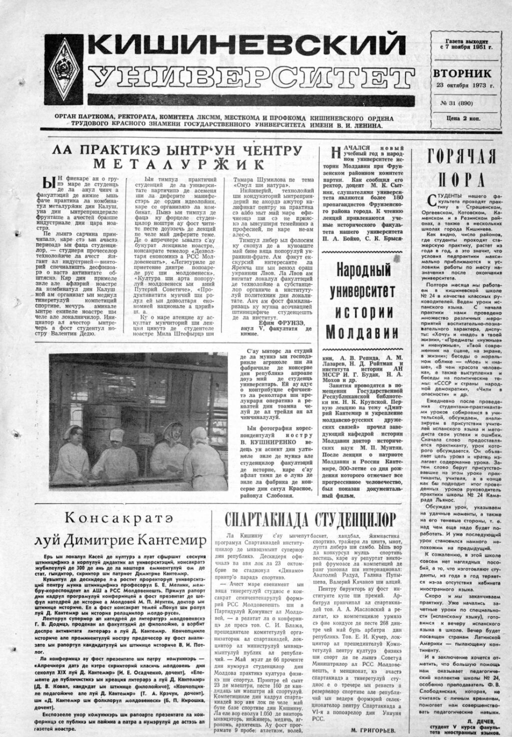 Ziarul USM – Nr. 31 (890) 23 octombrie 1973
