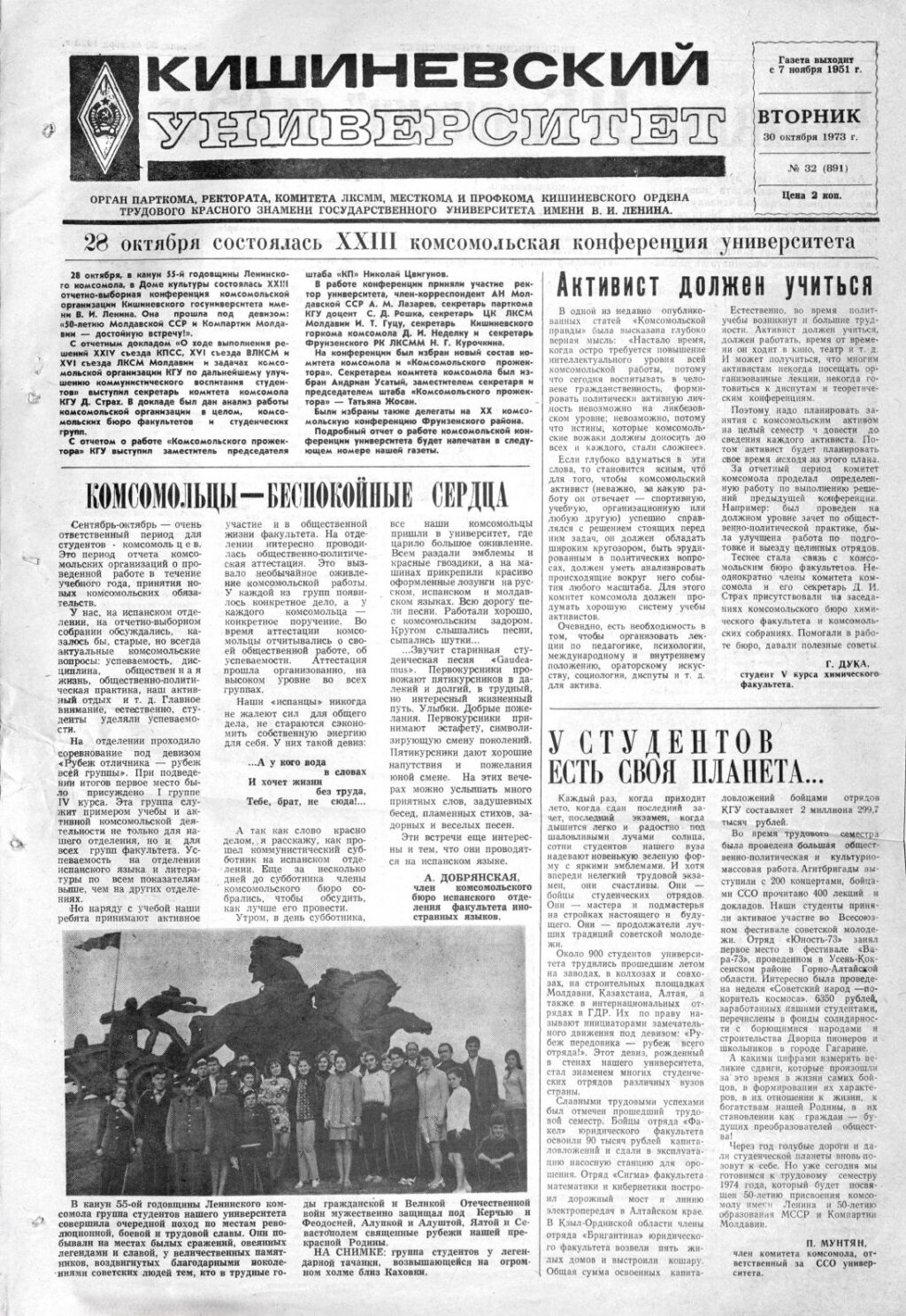Ziarul USM – Nr. 32 (891) 30 octombrie 1973