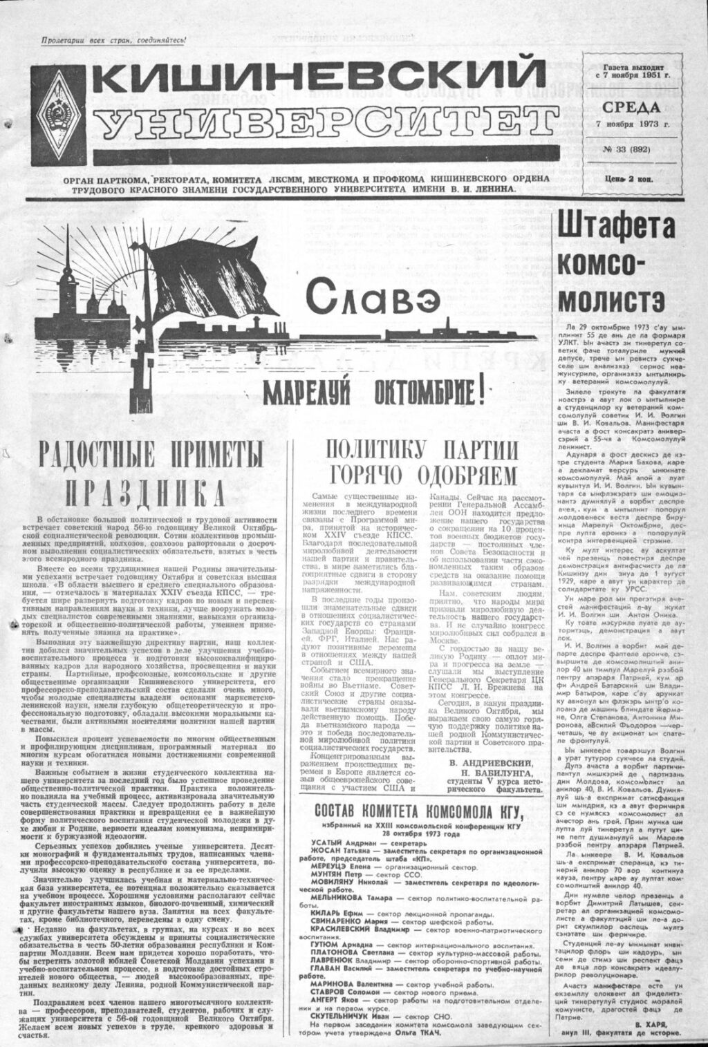 Ziarul USM – Nr. 33 (892) 7 noiembrie 1973