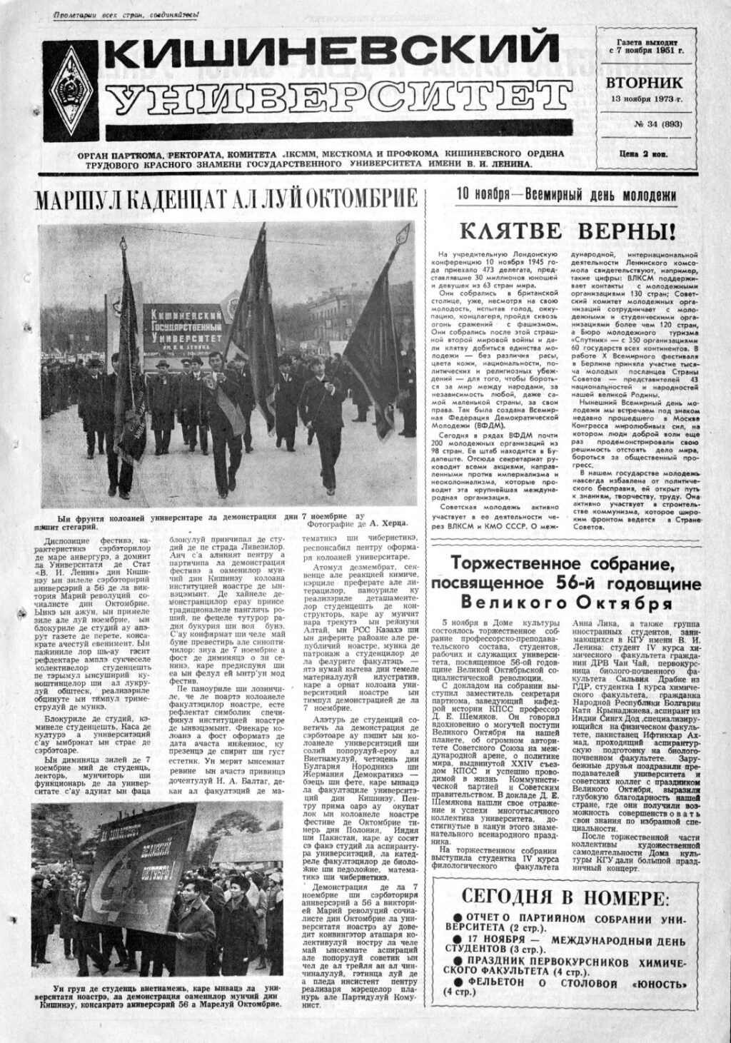 Ziarul USM – Nr. 34 (893) 13 noiembrie 1973