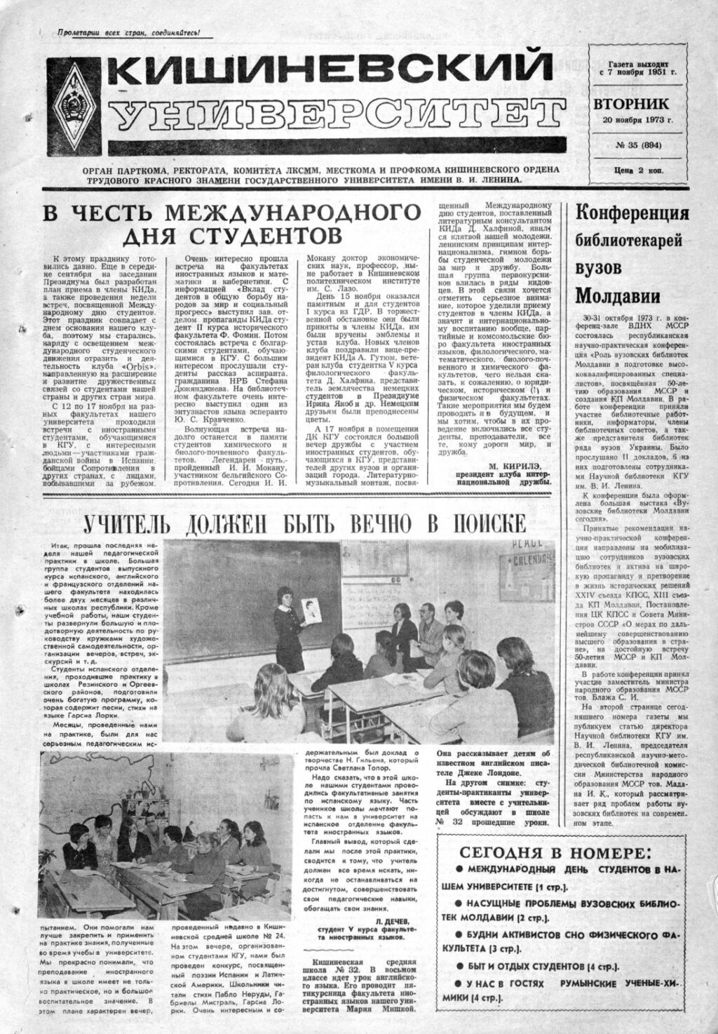 Ziarul USM – Nr. 35 (894) 20 noiembrie 1973