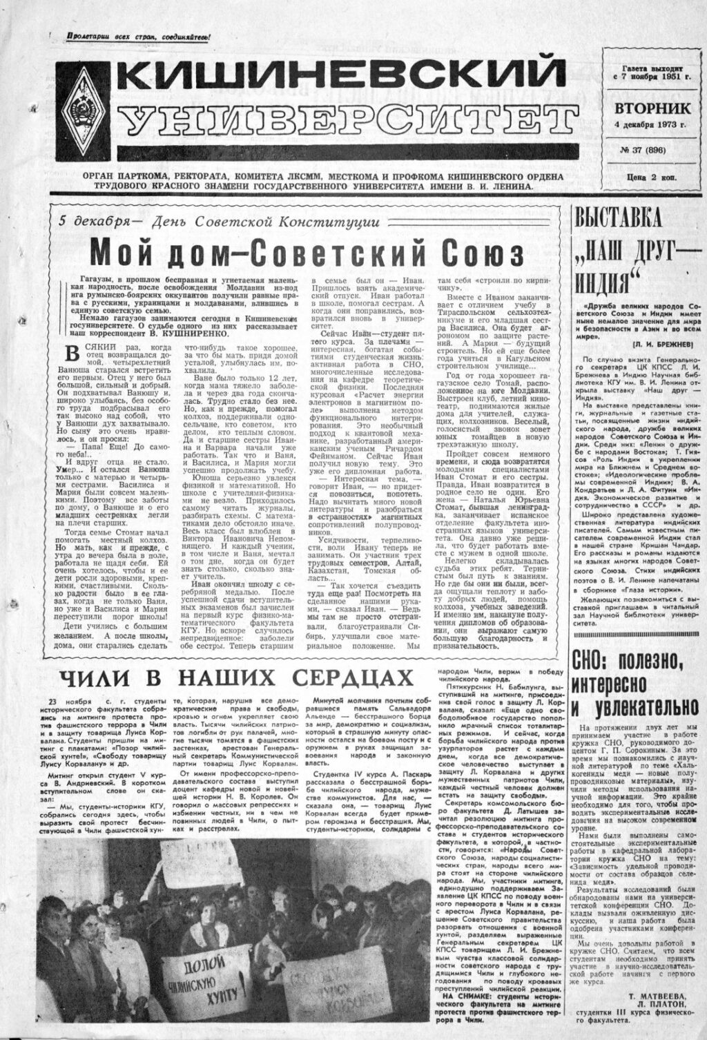 Ziarul USM – Nr. 37 (896) 4 decembrie 1973