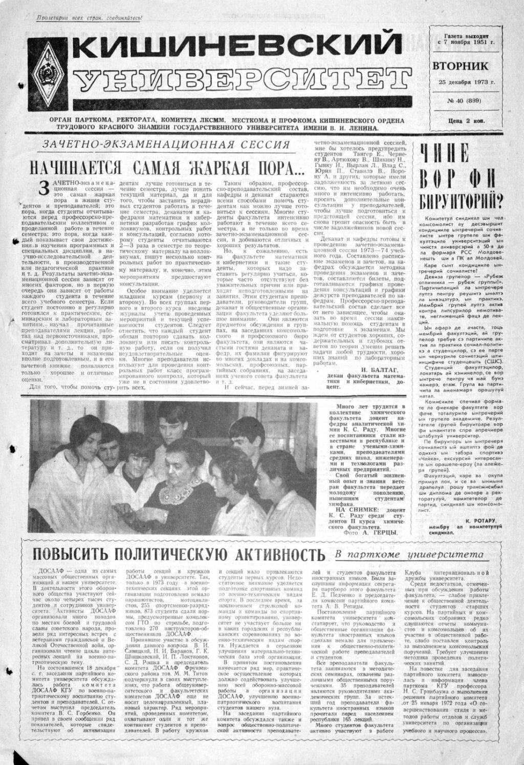 Ziarul USM – Nr. 40 (899) 25 decembrie 1973