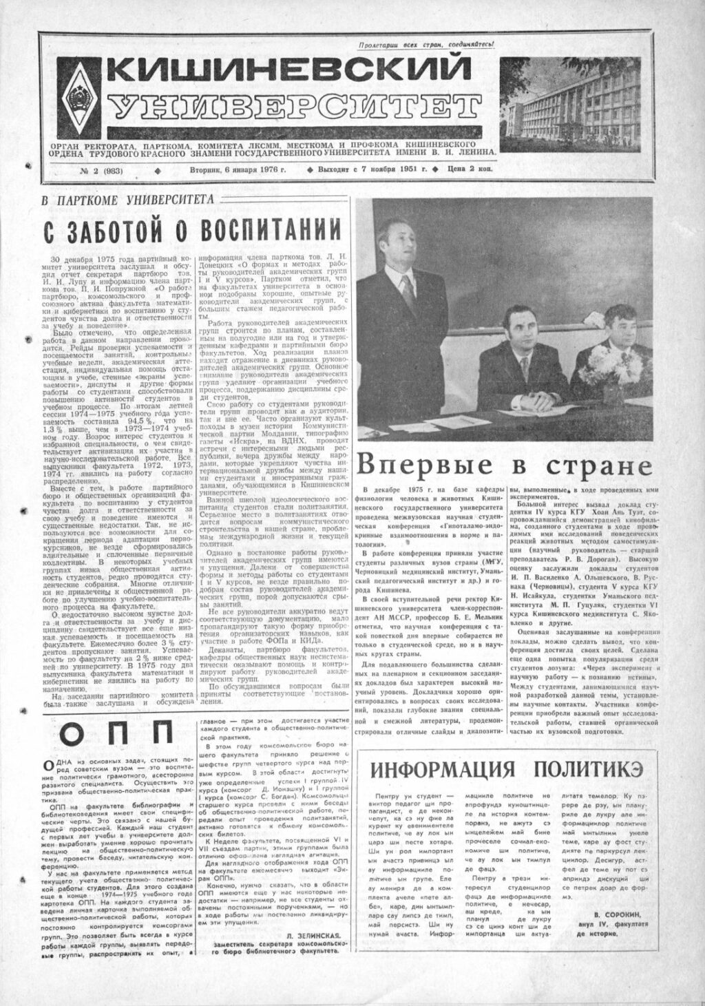 Ziarul USM – Nr. 2 (983) 6 ianuarie 1976