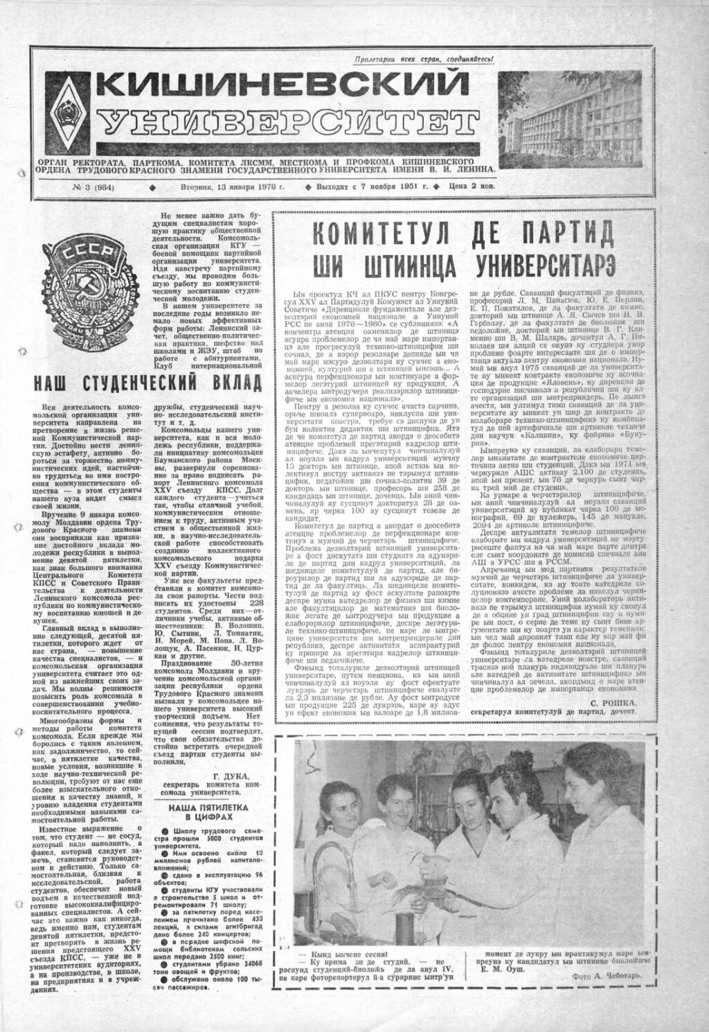 Ziarul USM – Nr. 3 (984) 13 ianuarie 1976
