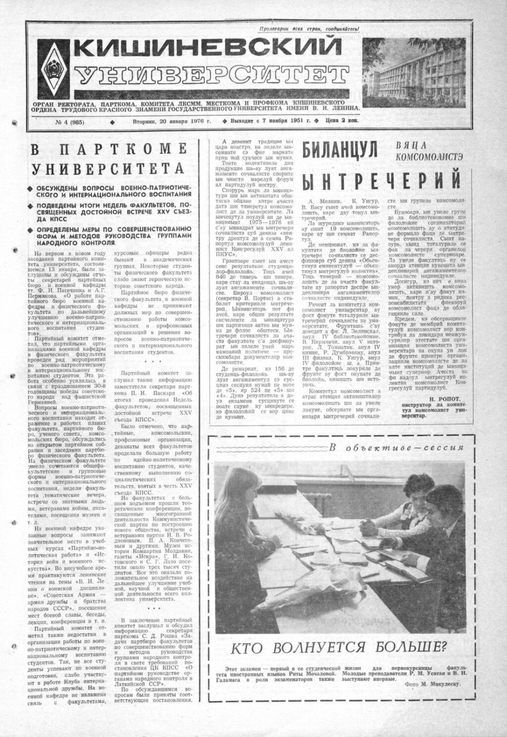 Ziarul USM – Nr. 4 (985) 20 ianuarie 1976