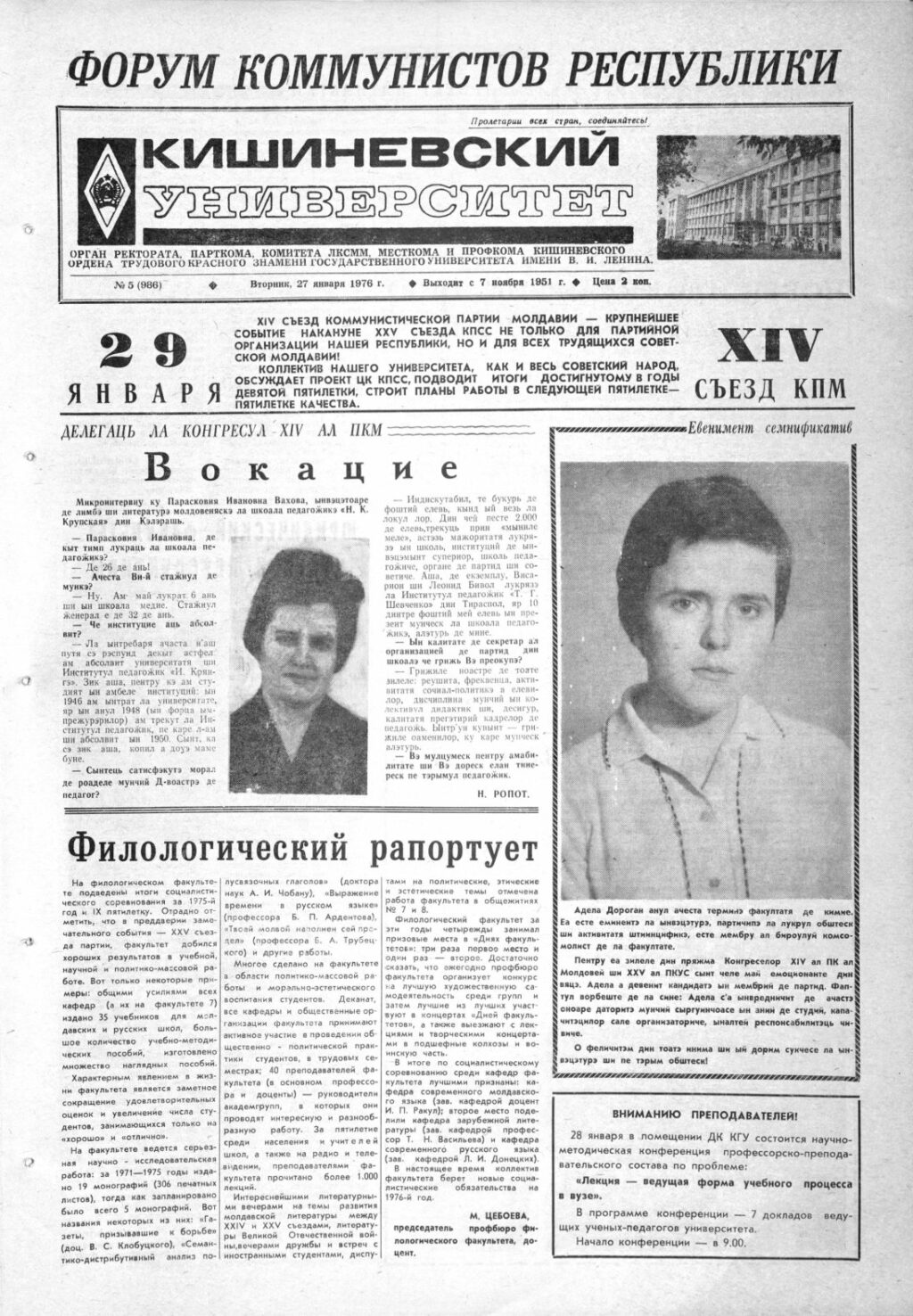 Ziarul USM – Nr. 5 (986) 27 ianuarie 1976
