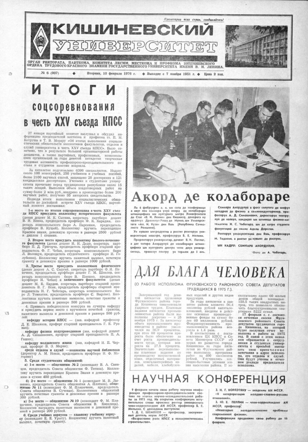 Ziarul USM – Nr. 6 (987) 10 februarie 1976