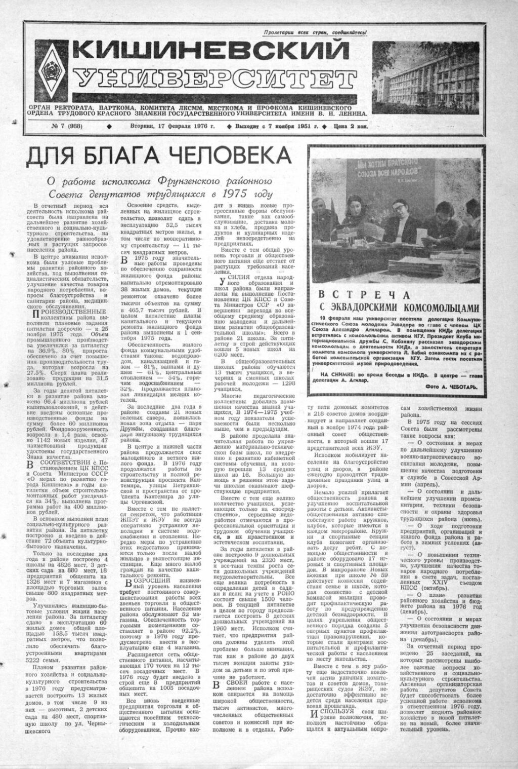Ziarul USM – Nr. 7 (988) 17 februarie 1976