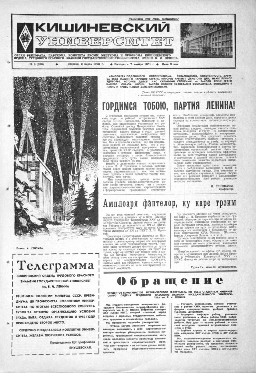 Ziarul USM – Nr. 9 (990) 2 martie 1976