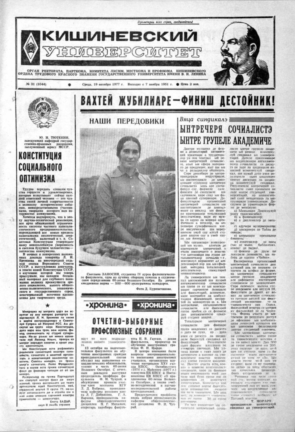 Ziarul USM – Nr. 31 (1044) 19 octombrie 1977