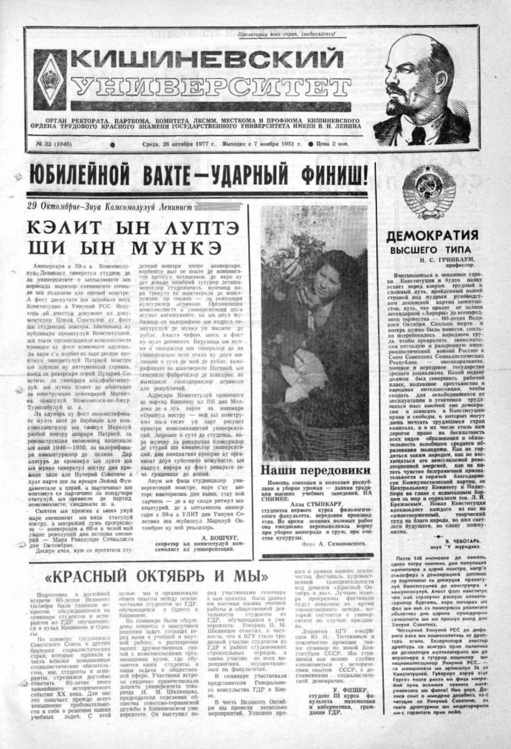 Ziarul USM – Nr. 32 (1045) 26 octombrie 1977