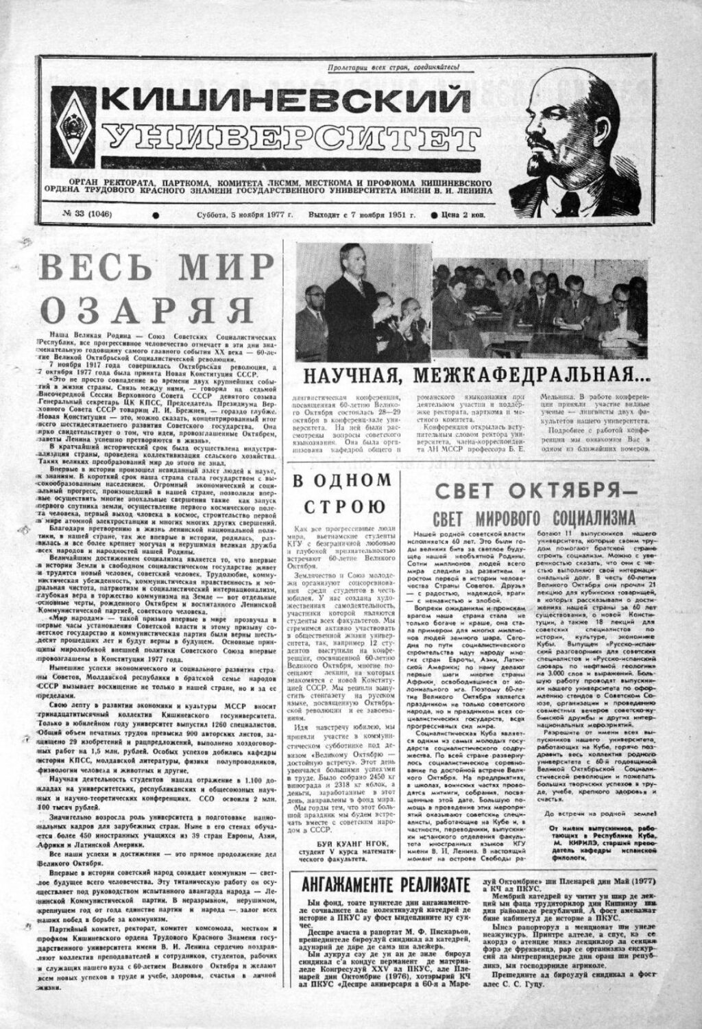 Ziarul USM – Nr. 33 (1046) 5 noiembrie 1977