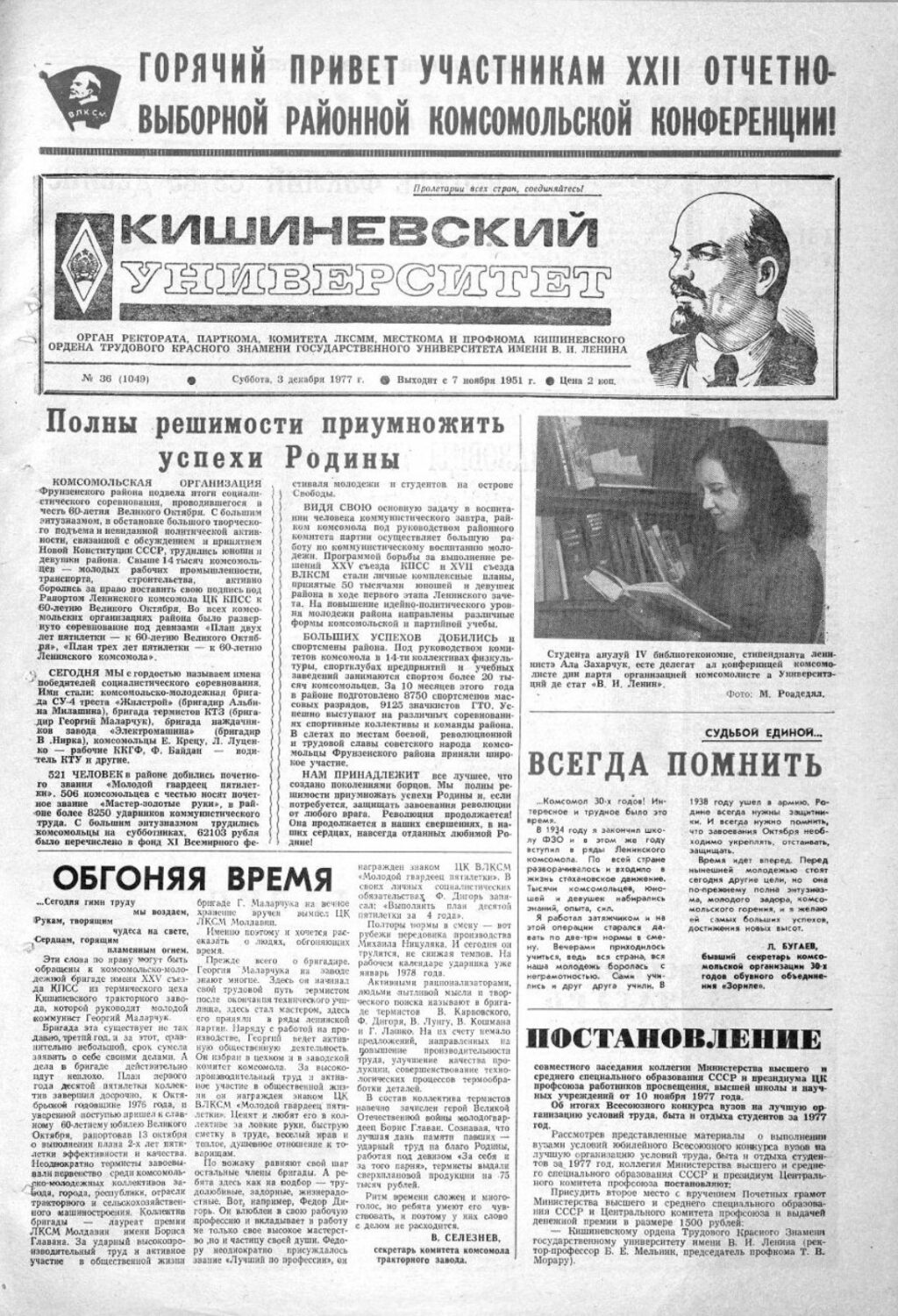 Ziarul USM – Nr. 36 (1049) 3 decembrie 1977