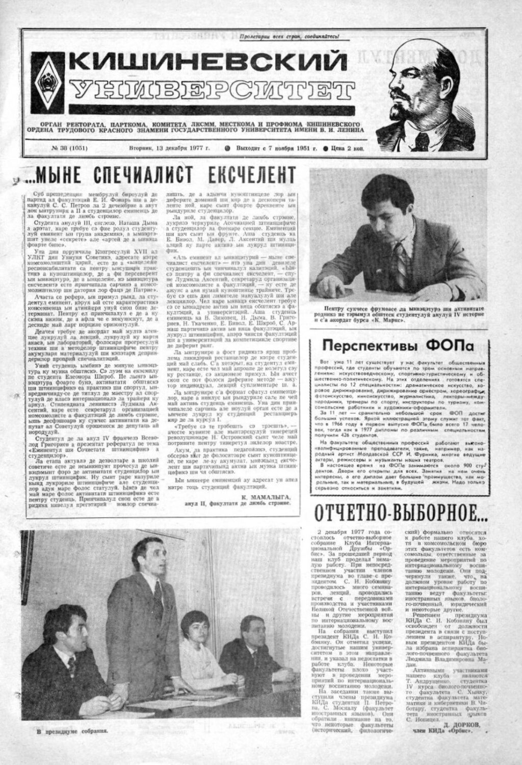 Ziarul USM – Nr. 38 (1051) 13 decembrie 1977