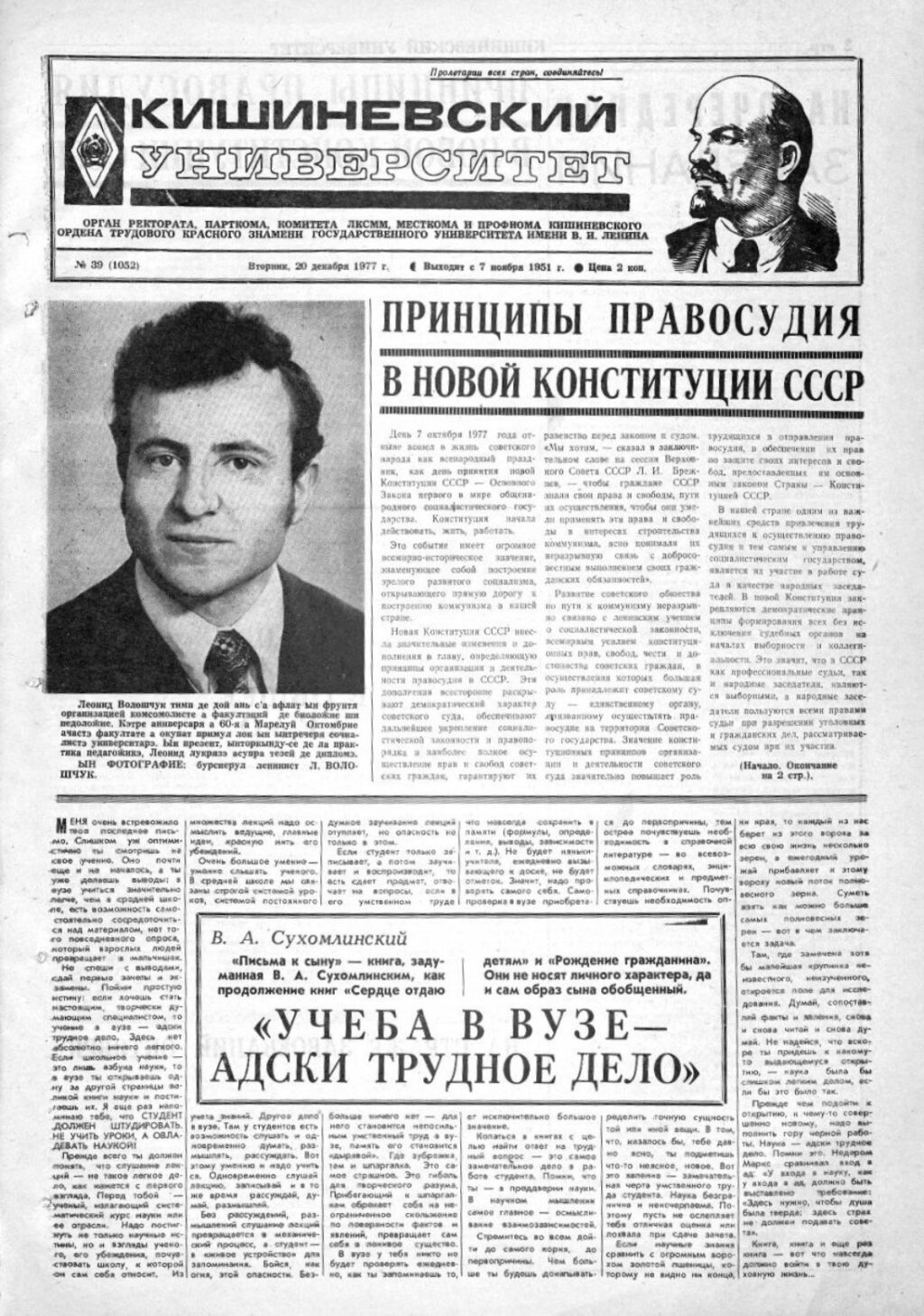 Ziarul USM – Nr. 39 (1052) 20 decembrie 1977