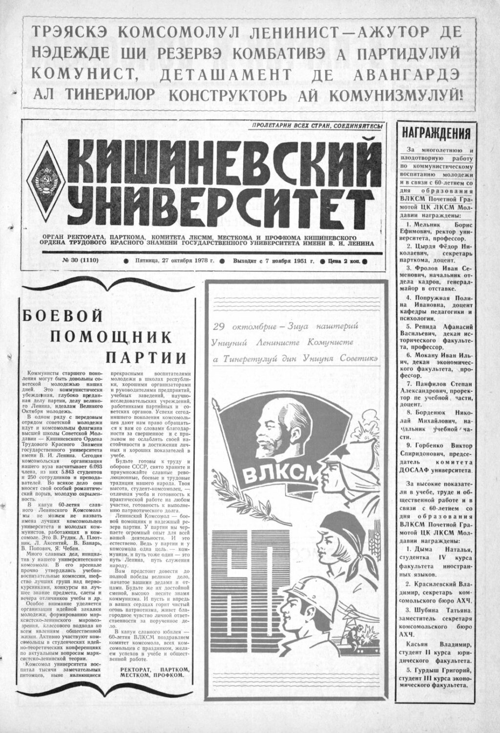 Ziarul USM – Nr. 30 (1110) 27 octombrie 1978