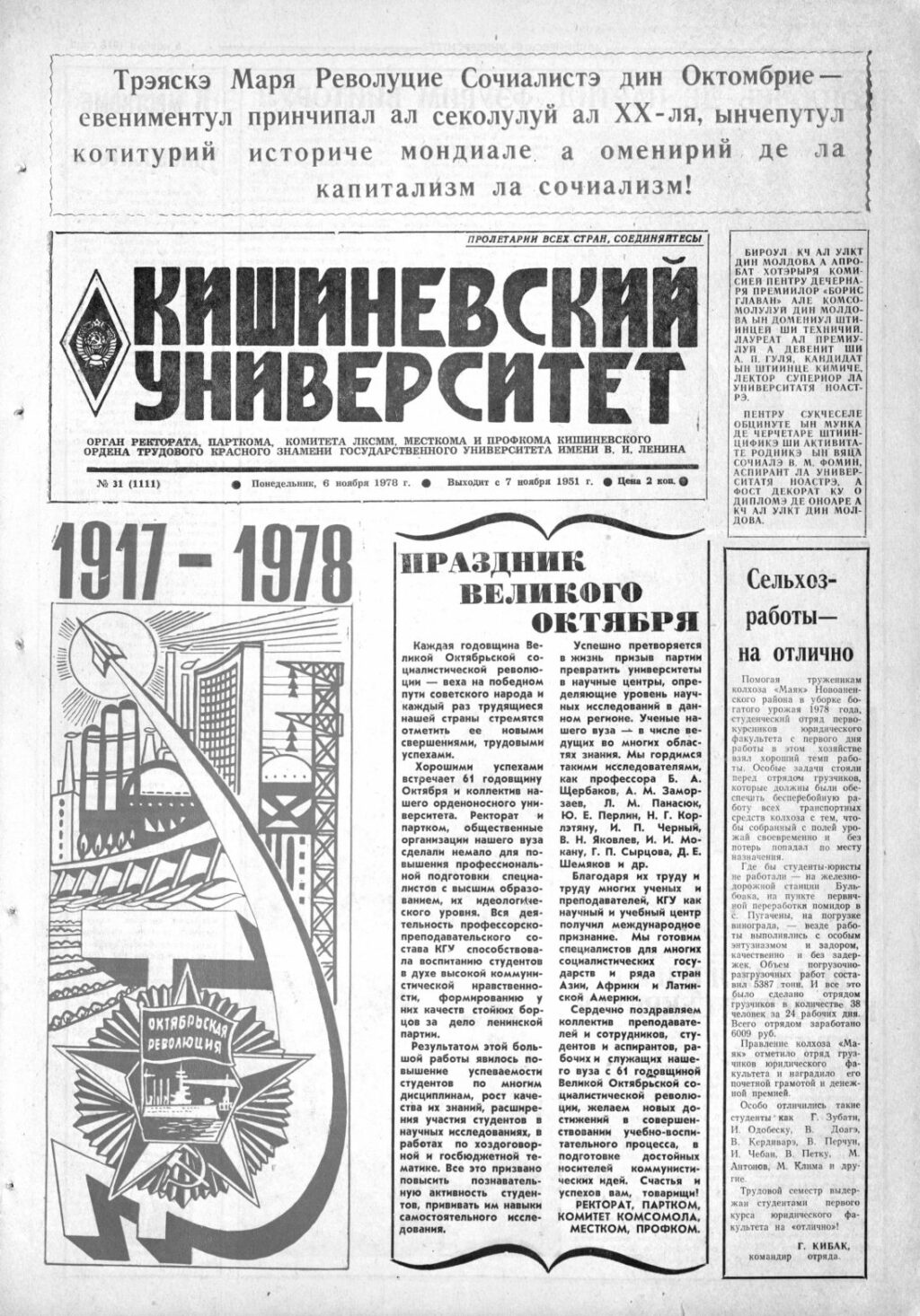 Ziarul USM – Nr. 31 (1111) 6 noiembrie 1978