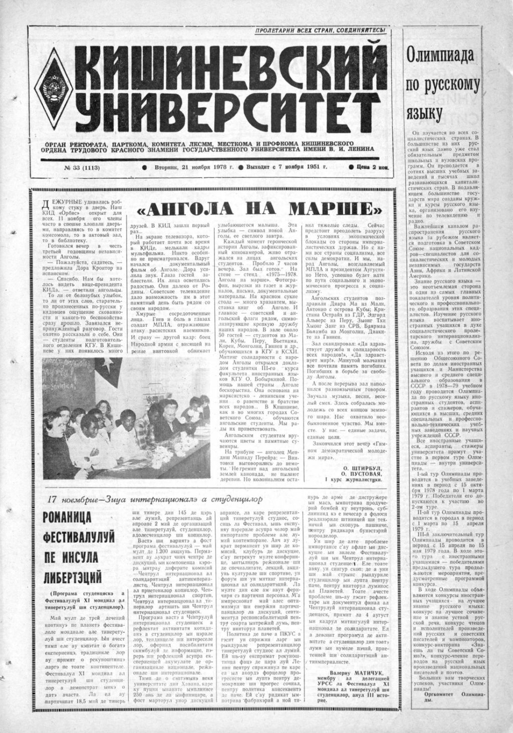 Ziarul USM – Nr. 33 (1113) 21 noiembrie 1978
