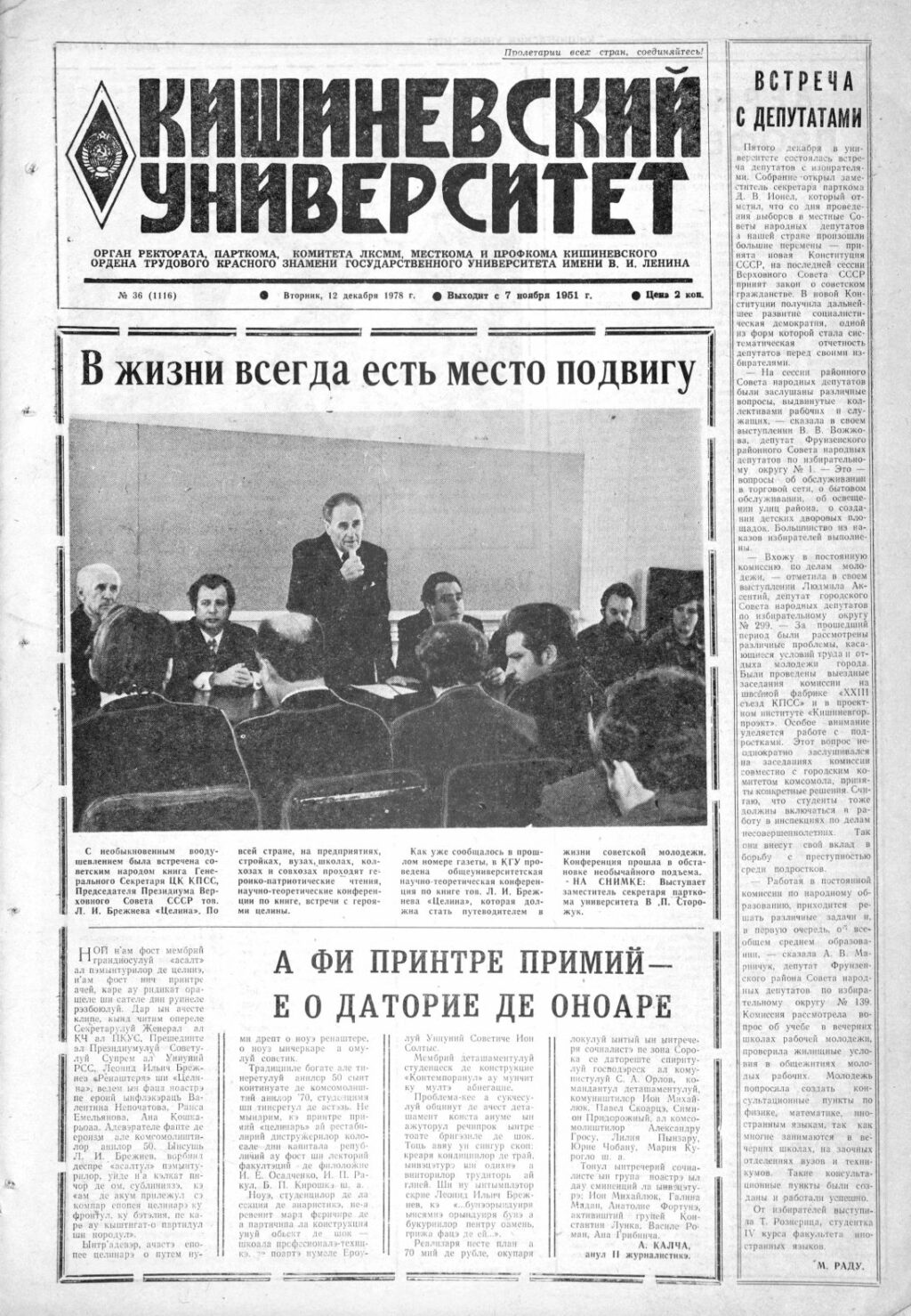 Ziarul USM – Nr. 36 (1116) 12 decembrie 1978