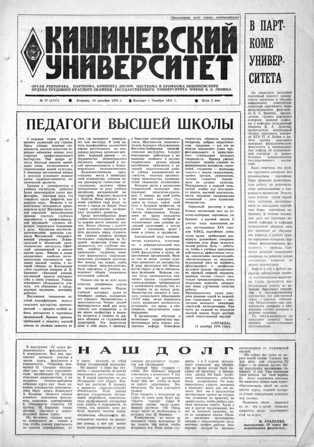 Ziarul USM – Nr. 37 (1117) 19 decembrie 1978