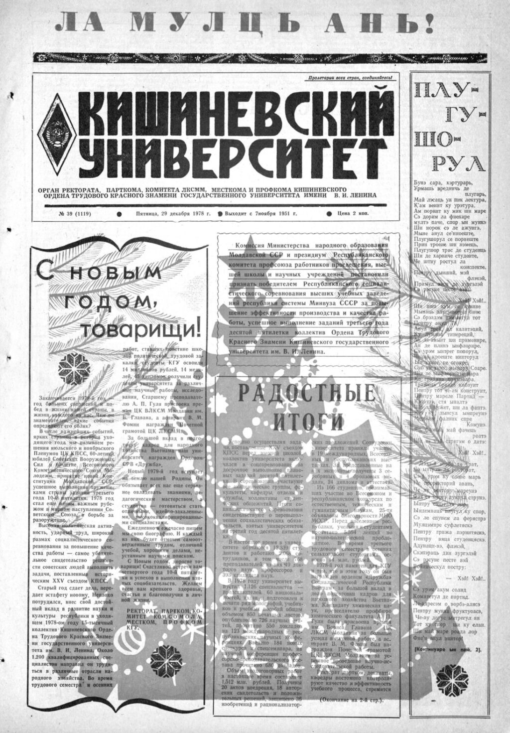 Ziarul USM – Nr. 39 (1119) 29 decembrie 1978