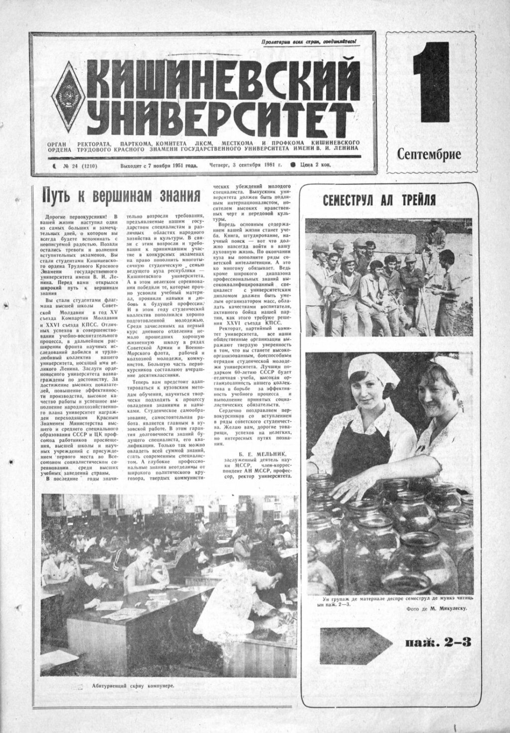 Ziarul USM – Nr. 24 (1210) 3 septembrie 1981