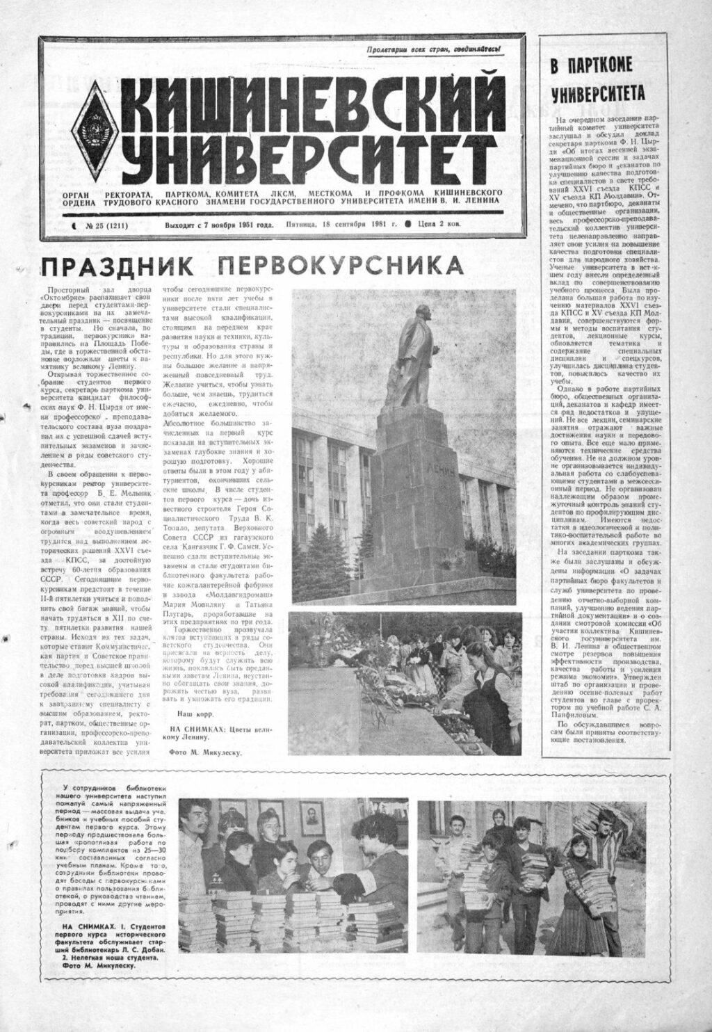 Ziarul USM – Nr. 25 (1211) 18 septembrie 1981