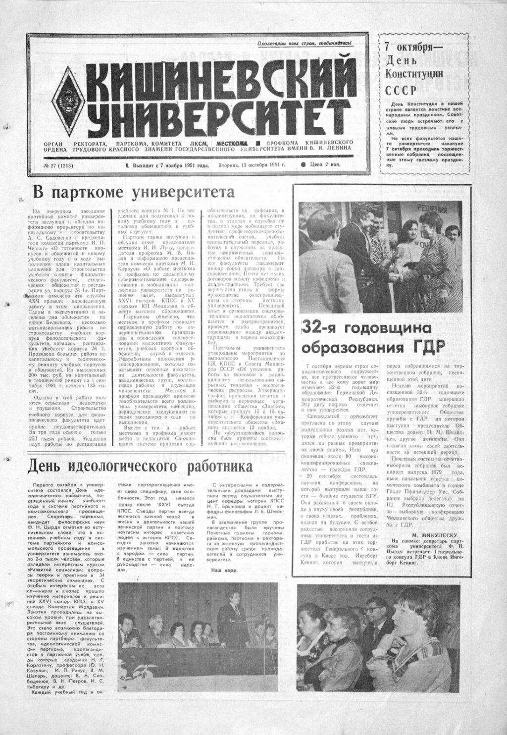 Ziarul USM – Nr. 27 (1213) 13 octombrie 1981