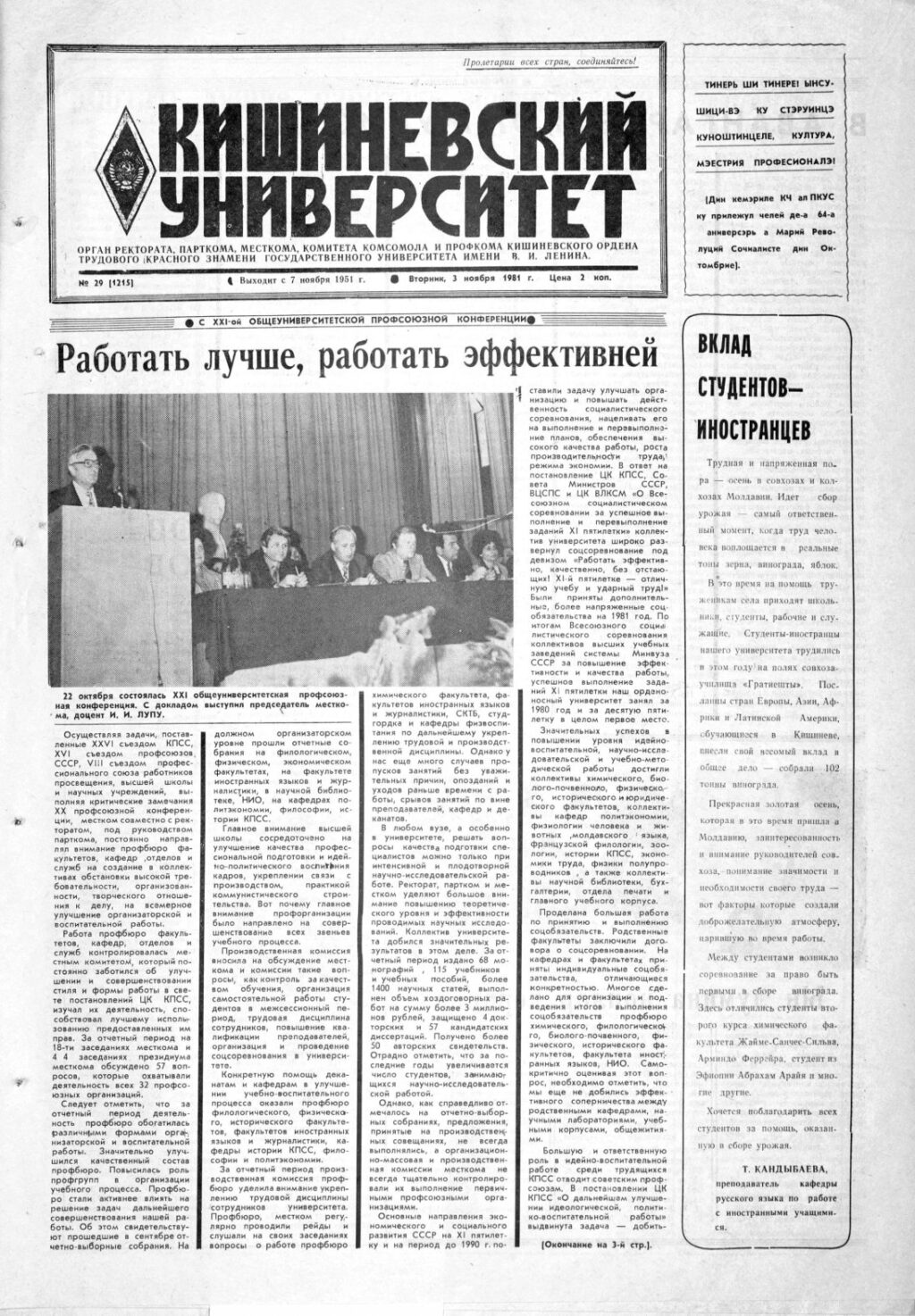 Ziarul USM – Nr. 29 (1215) 3 noiembrie 1981