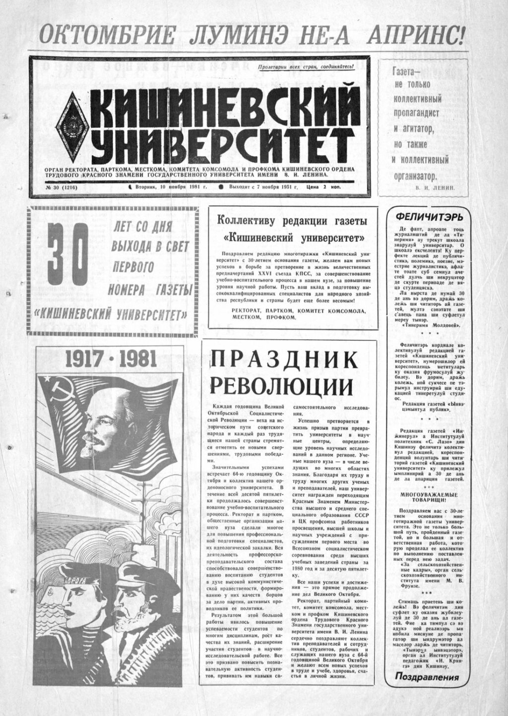 Ziarul USM – Nr. 30 (1216) 10 noiembrie 1981