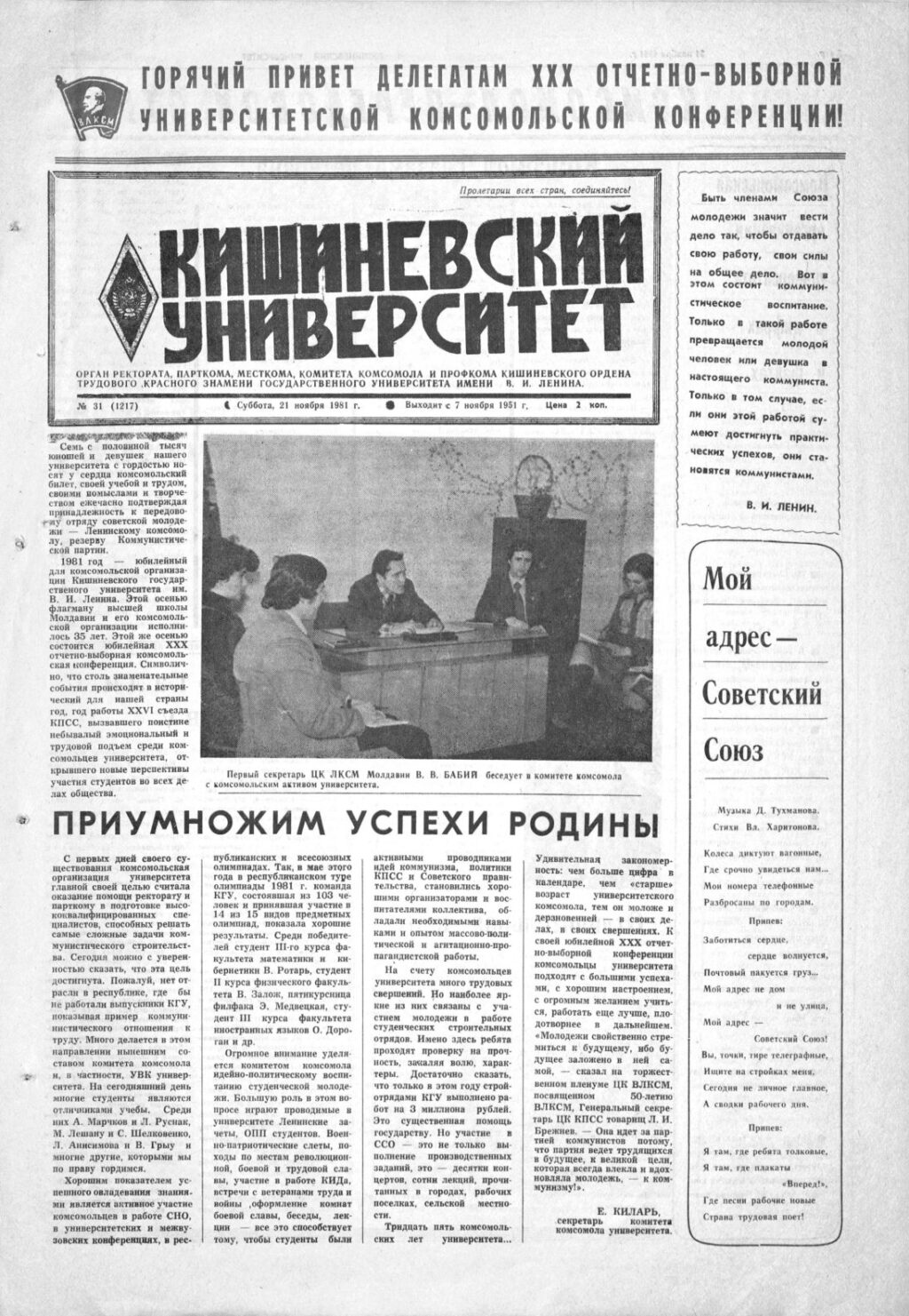 Ziarul USM – Nr. 31 (1217) 21 noiembrie 1981