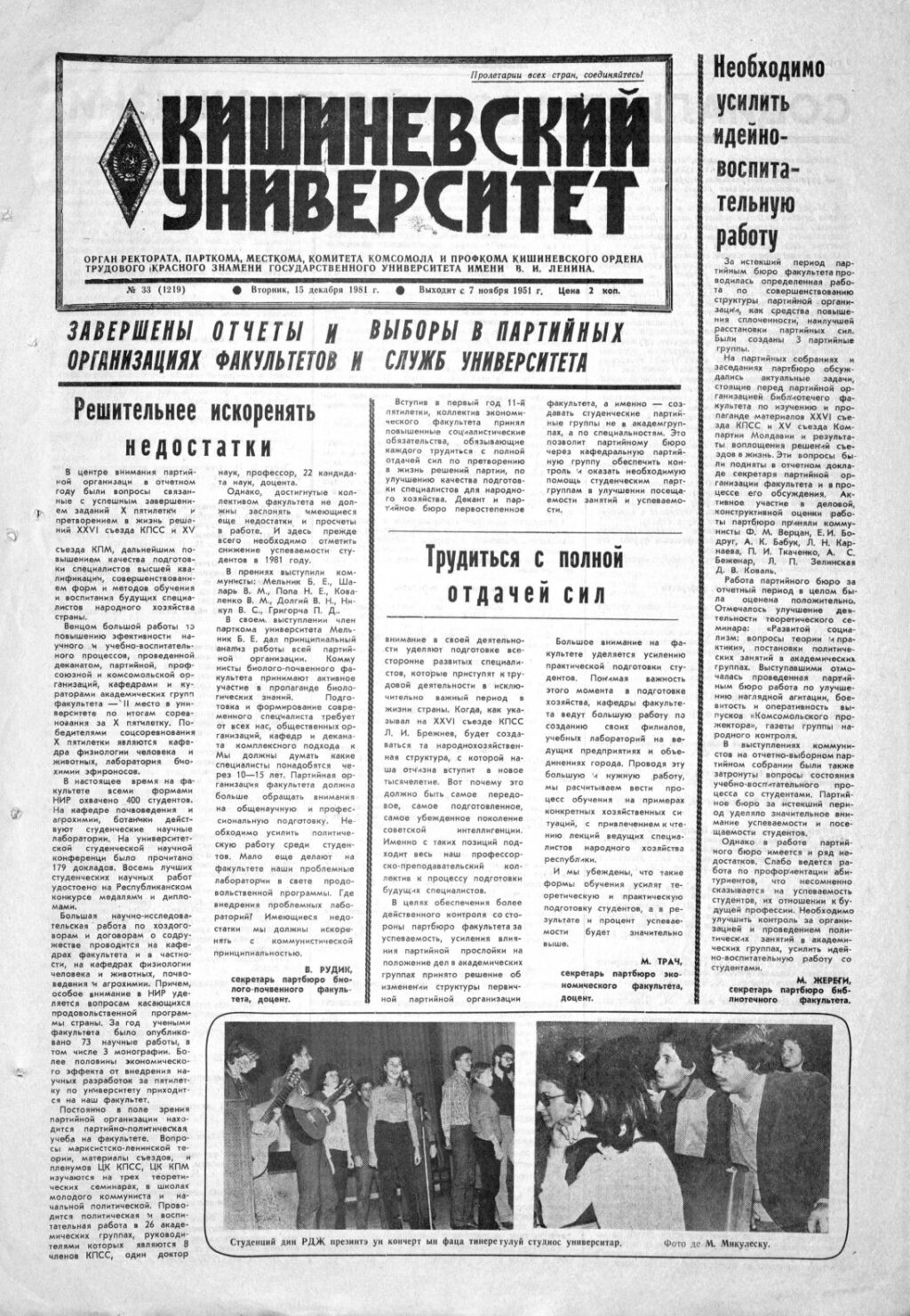 Ziarul USM – Nr. 33 (1219) 15 decembrie 1981