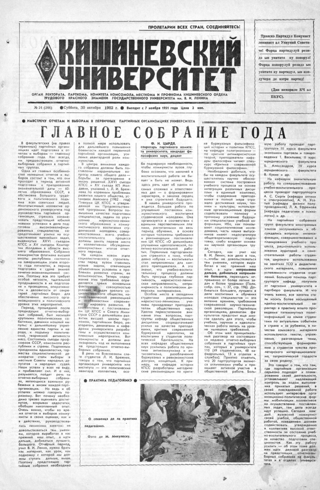 Ziarul USM – Nr. 24 (1244) 30 octombrie 1982