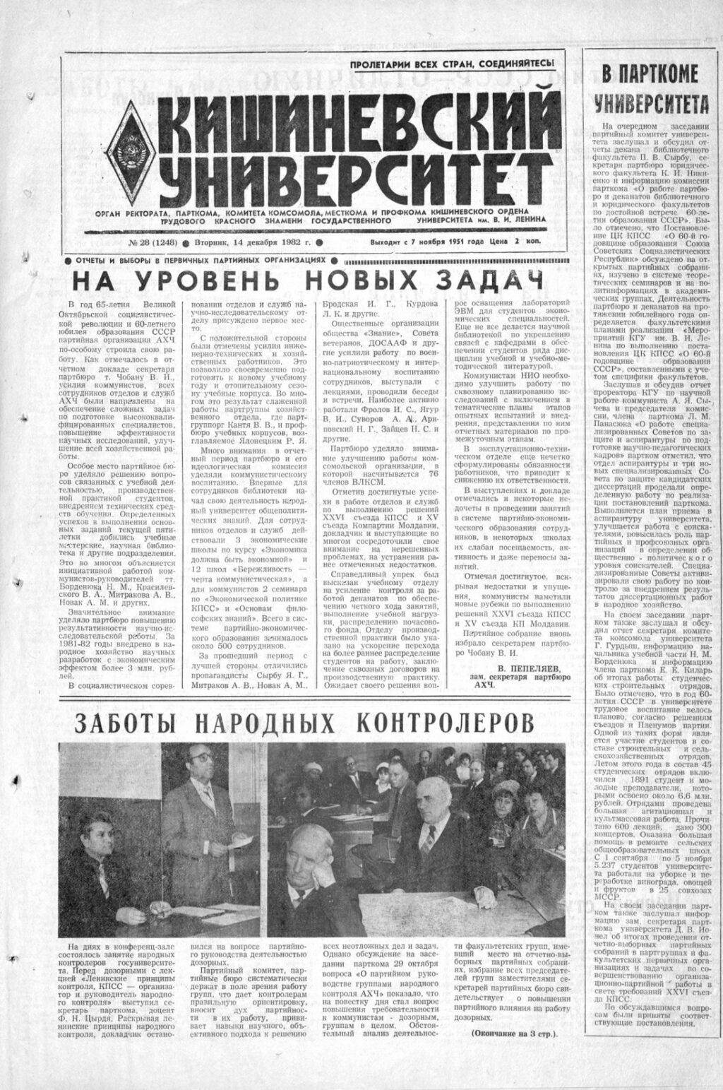 Ziarul USM – Nr. 28 (1248) 14 decembrie 1982