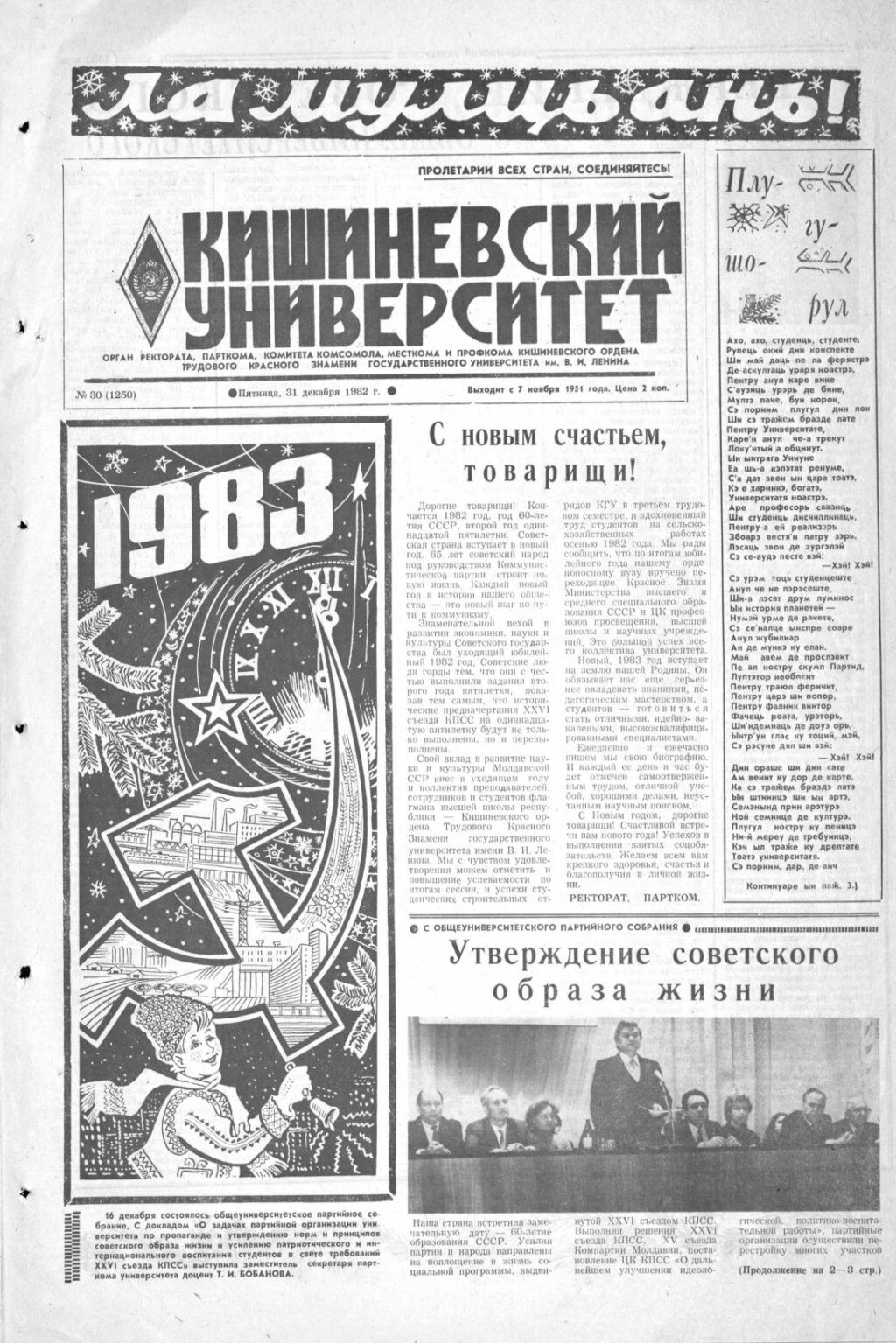 Ziarul USM – Nr. 30 (1250) 31 decembrie 1982
