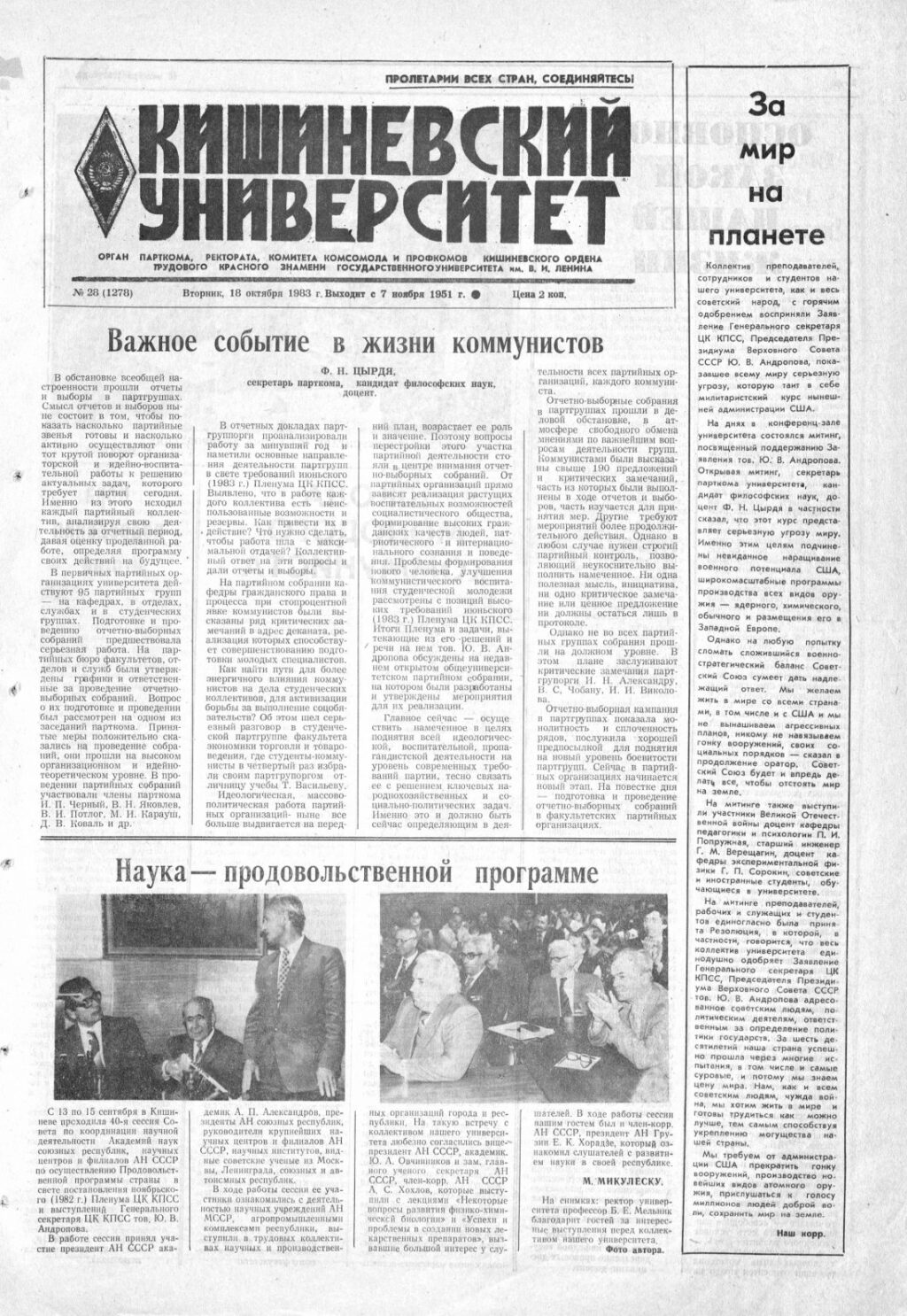 Ziarul USM – Nr. 28 (1278) 18 octombrie 1983
