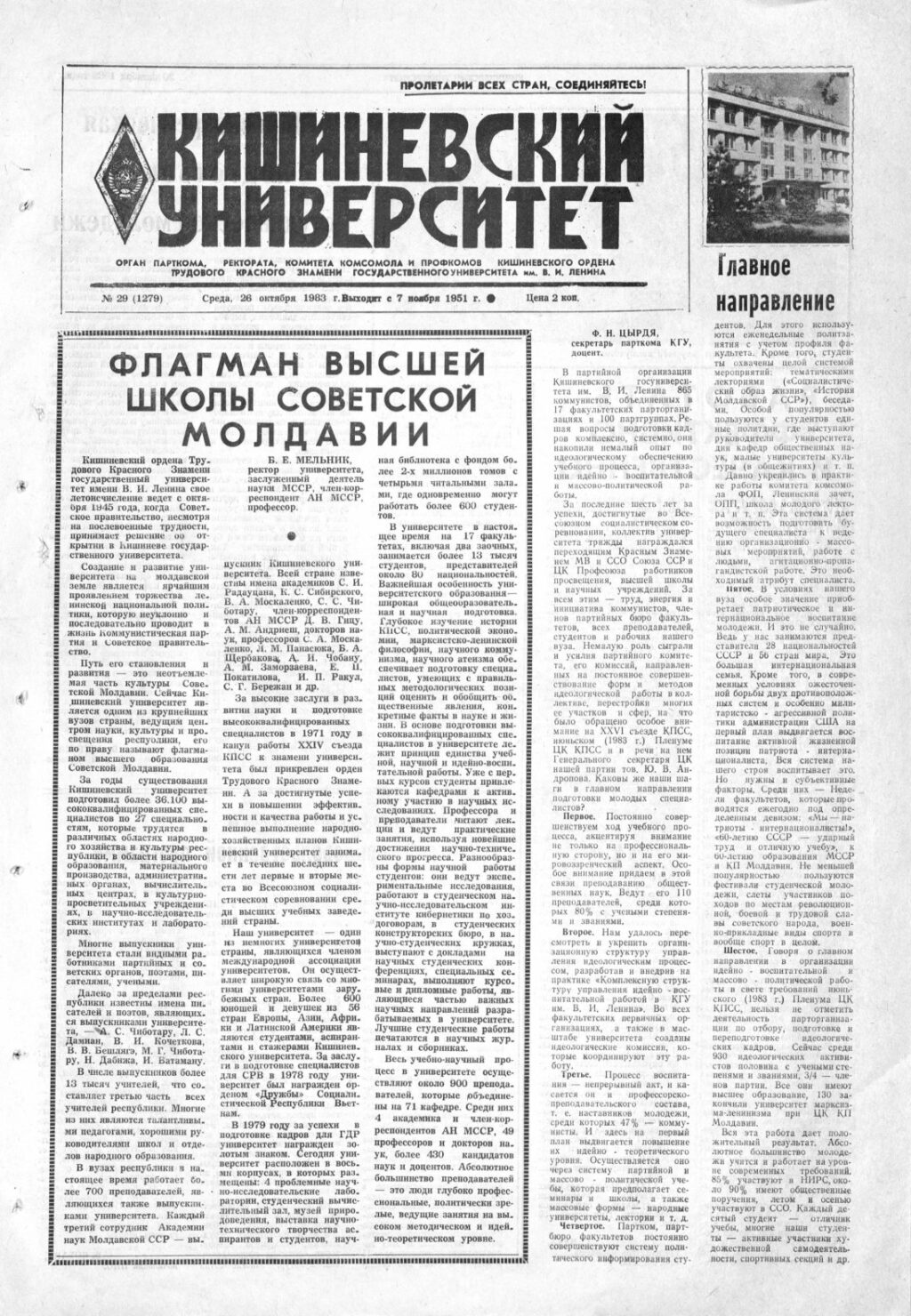 Ziarul USM – Nr. 29 (1279) 26 octombrie 1983
