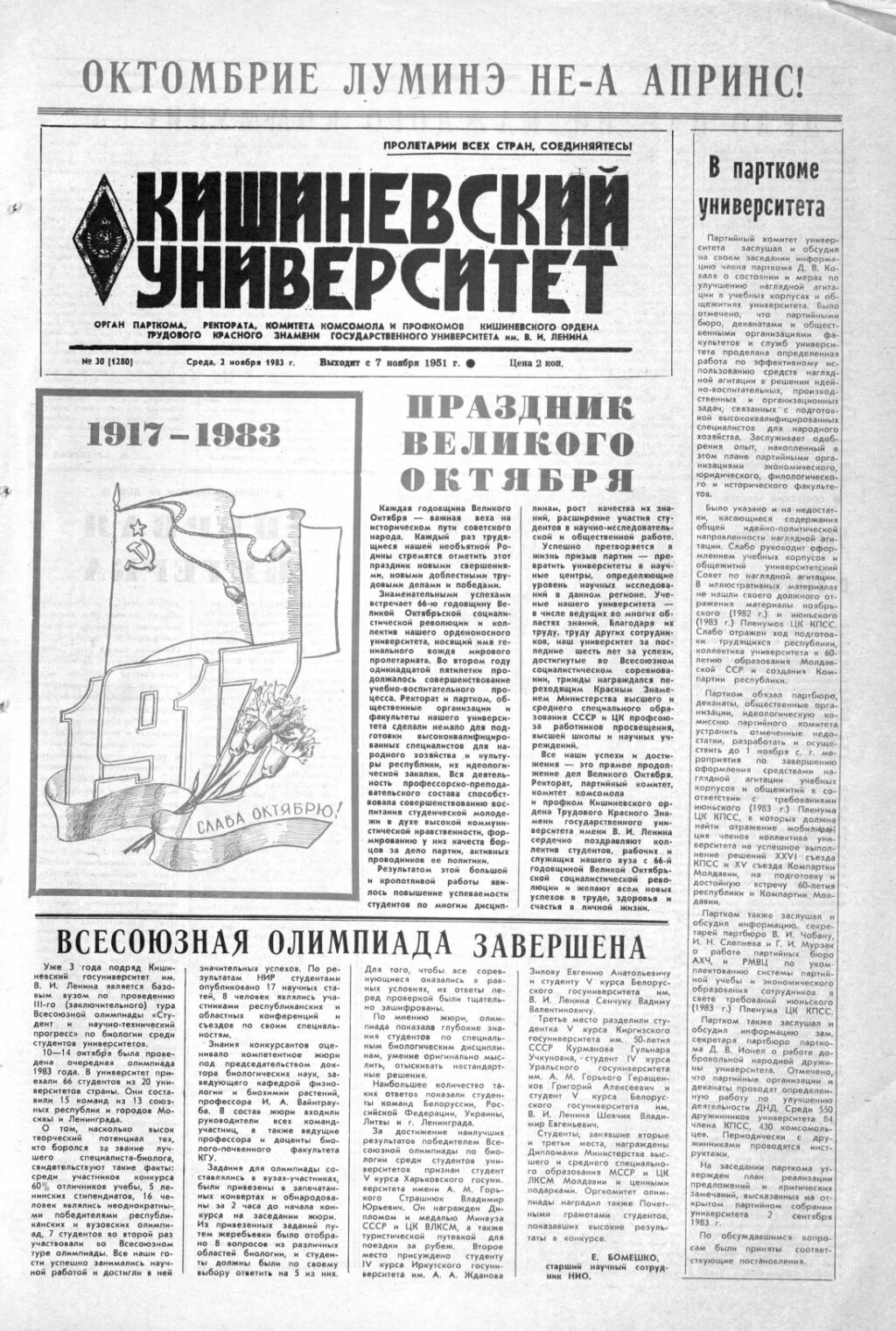 Ziarul USM – Nr. 30 (1280) 2 noiembrie 1983