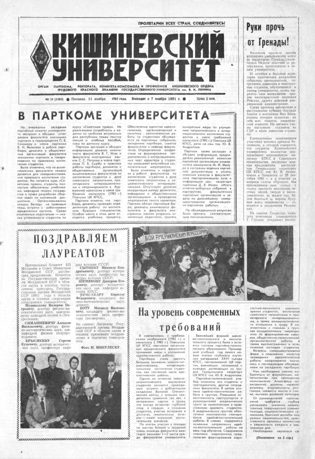 Ziarul USM – Nr. 31 (1381) 11 noiembrie 1983