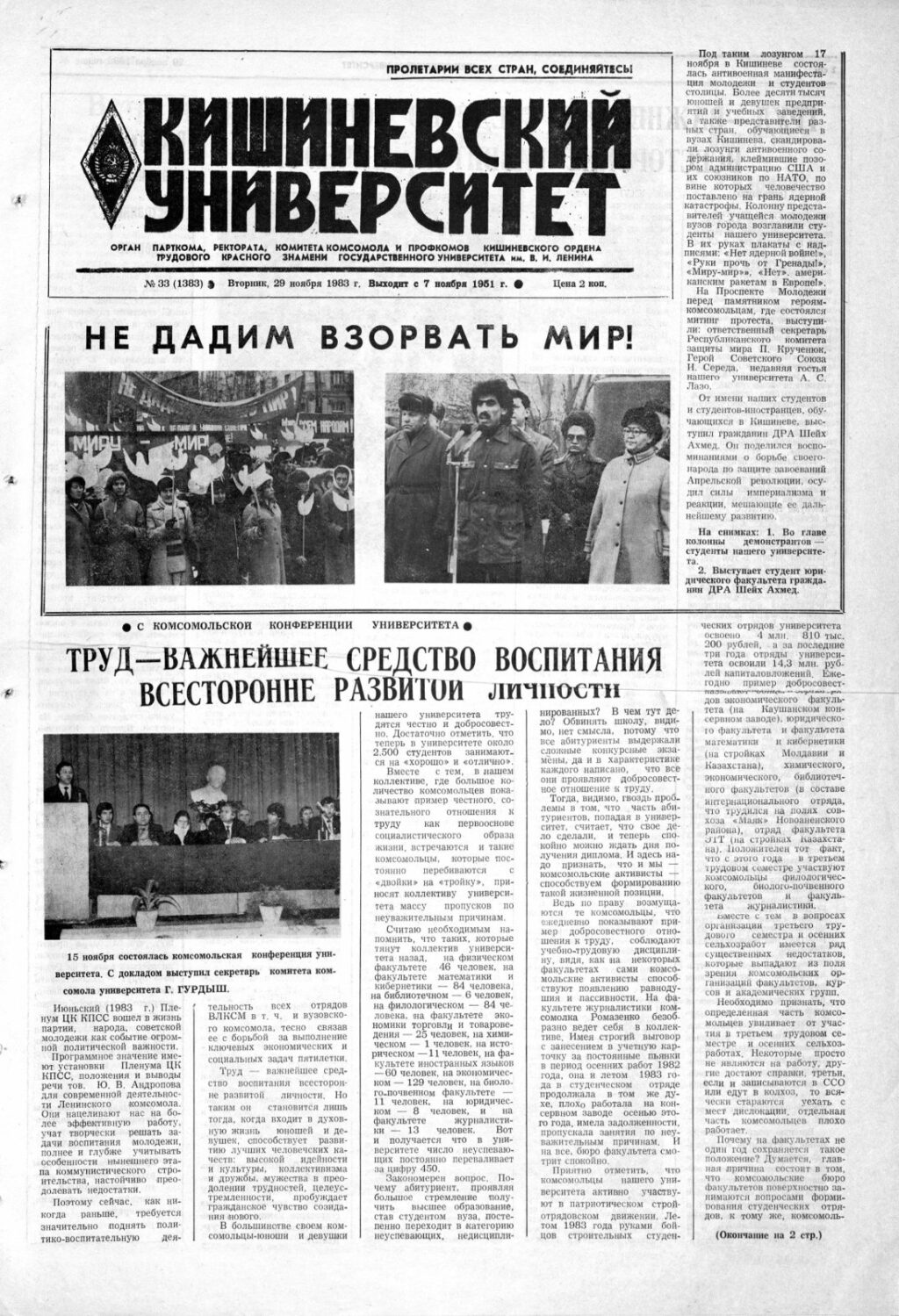 Ziarul USM – Nr. 33 (1383) 29 noiembrie 1983