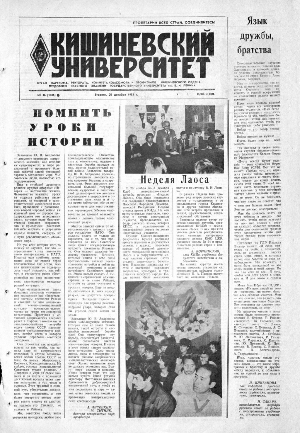 Ziarul USM – Nr. 36 (1386) 20 decembrie 1983