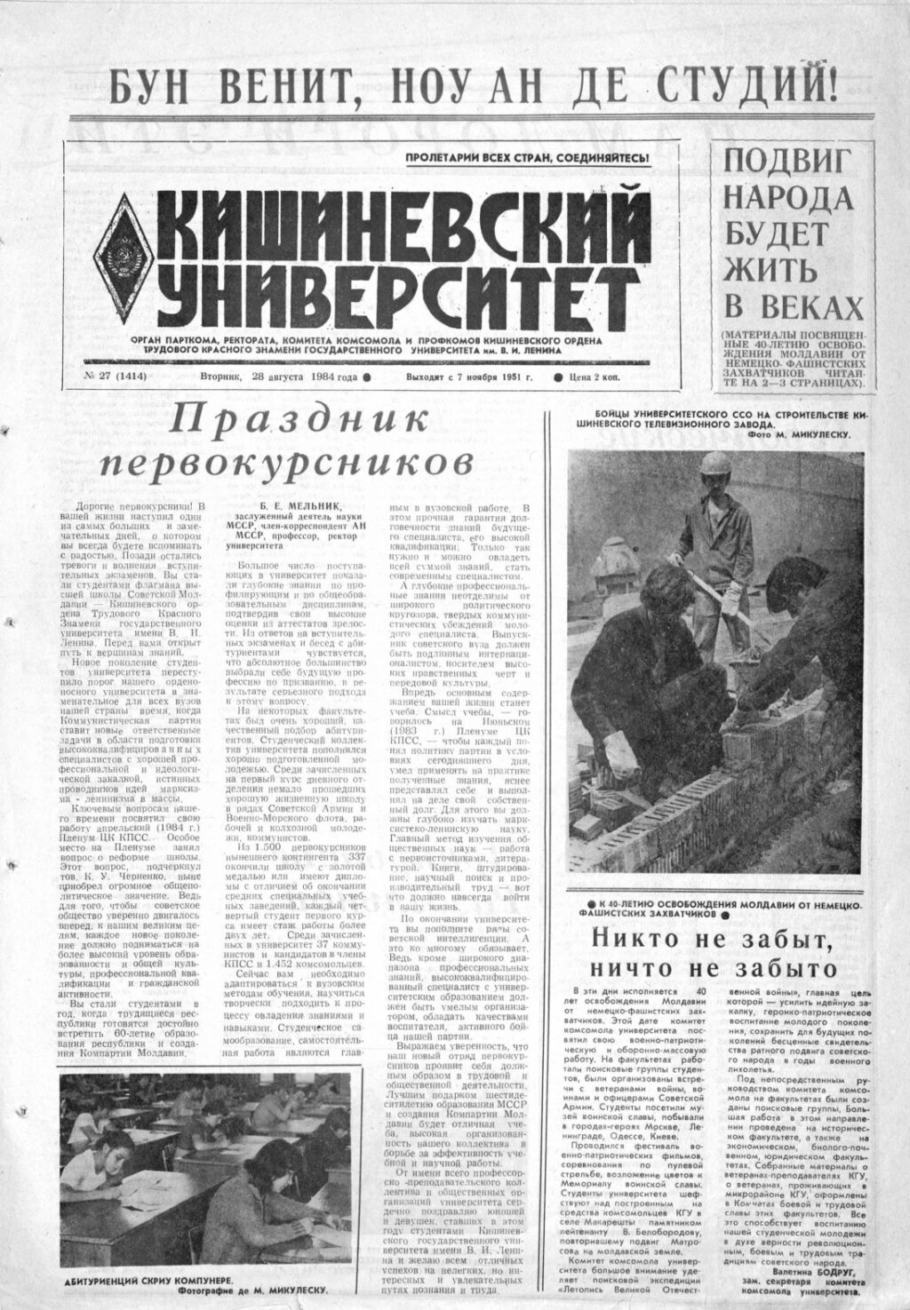 Ziarul USM – Nr. 27 (1414) 28 august 1984