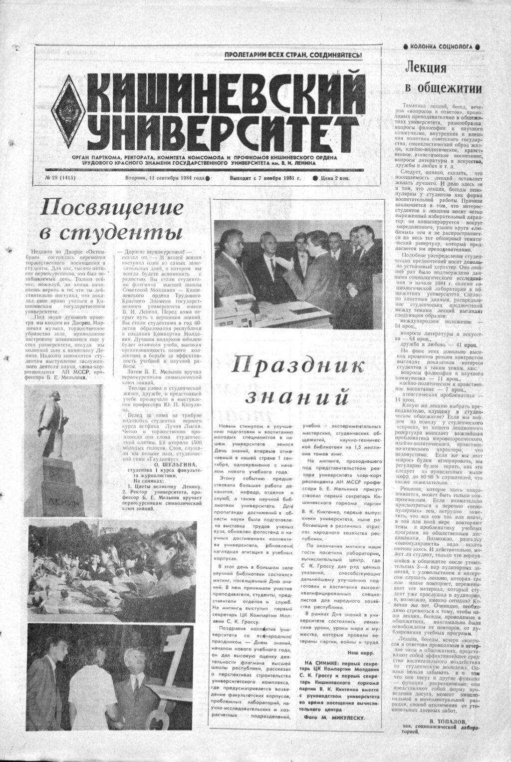 Ziarul USM – Nr. 28 (1415) 11 septembrie 1984