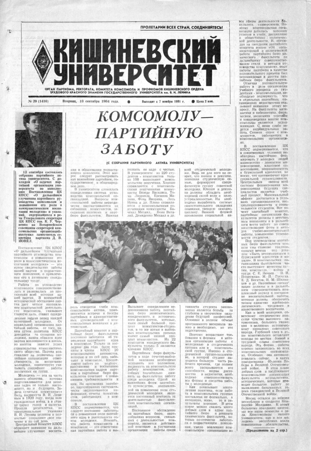 Ziarul USM – Nr. 29 (1416) 18 septembrie 1984