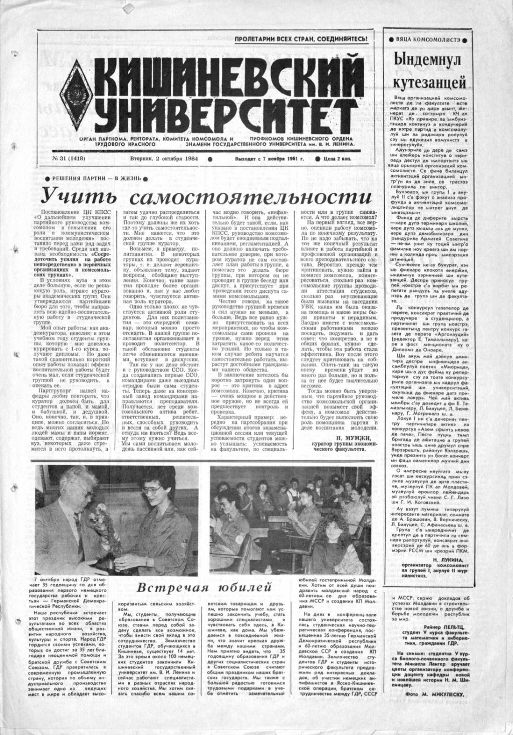 Ziarul USM – Nr. 31 (1418) 2 octombrie 1984
