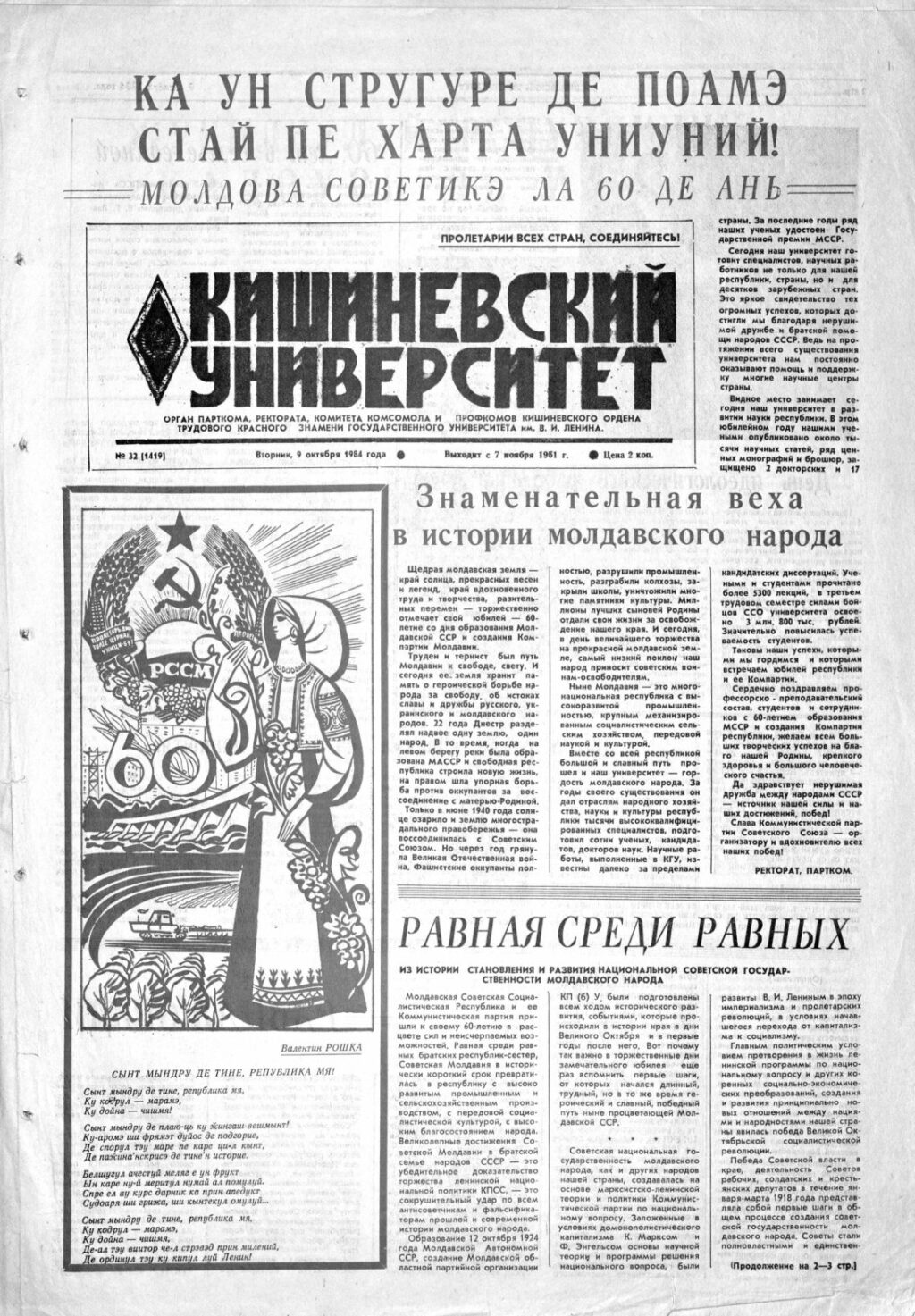 Ziarul USM – Nr. 32 (1419) 9 octombrie 1984