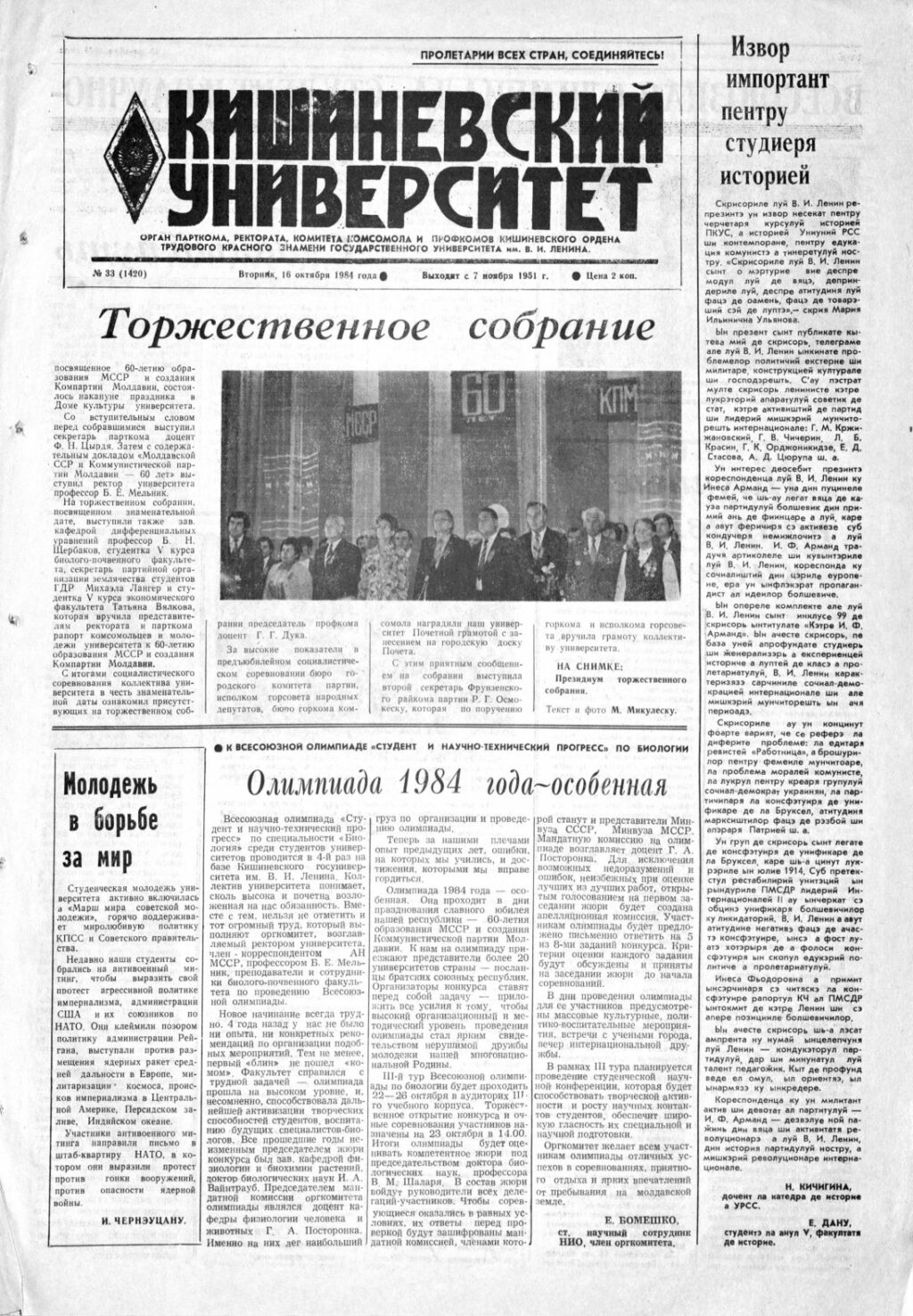 Ziarul USM – Nr. 33 (1420) 16 octombrie 1984